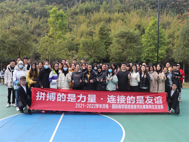 步调统一,团结一致,齐心协力,是班团前进脚步中最基本且最重要的因素;师生间怎样更好的交流,刻板的师生关系印象怎样才能打破,如何以师为友,与友共乐,不可否认全民参与其中是可以让这条鸿沟逐渐靠拢的,特此开展“拼搏的是力量·连接的是友谊”———2021-2022学年淬炼·国际商学院班级拔河比赛暨师生友谊赛。