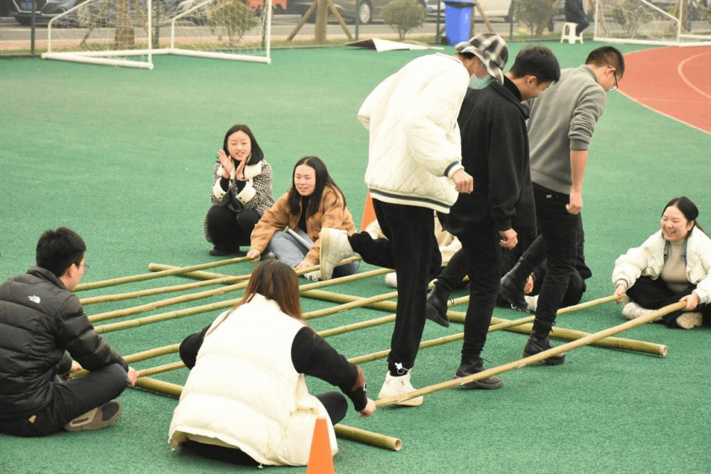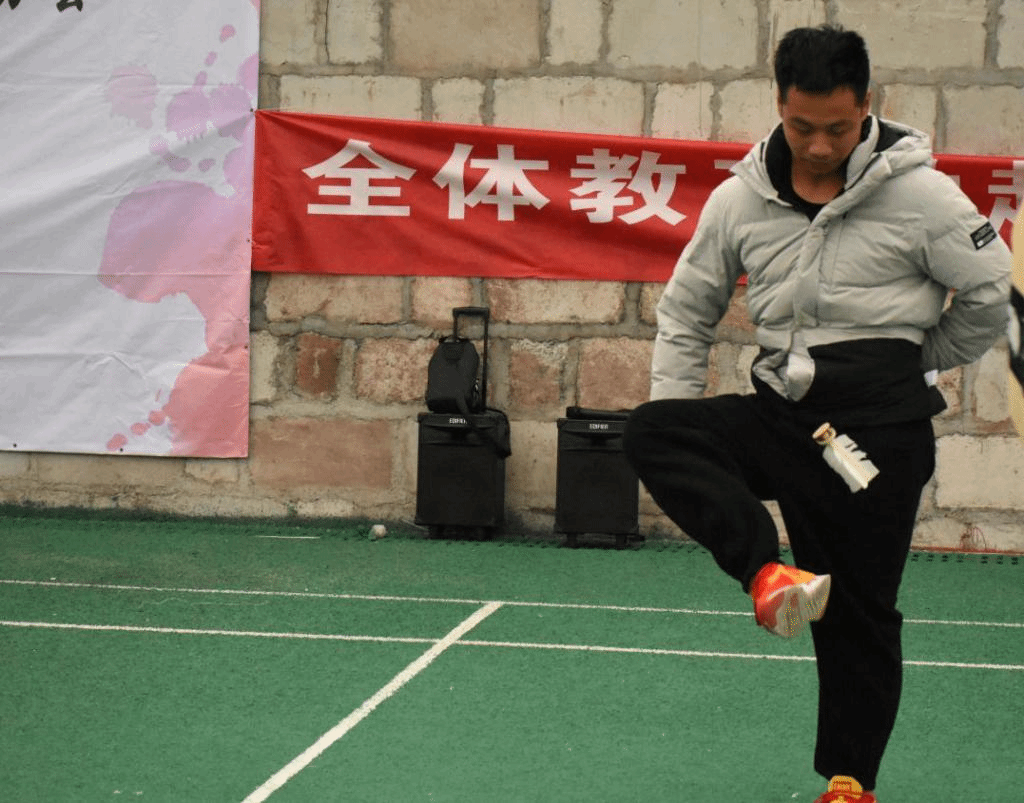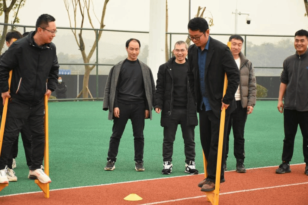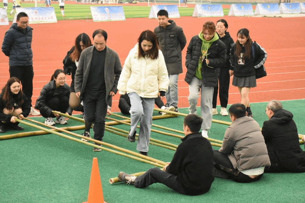 踩高跷,是汉族传统民俗活动之一。踩高跷俗称缚柴脚,亦称“高跷”、“踏高跷”、“扎高脚”、“走高腿”,是原始社会人们为采摘树上野果的一种工具,但如今高跷已发展成一项民间盛行的杂技艺术。来到高跷竞速挑战的比赛场地,在裁判的一声令下之后,老师们踩上高跷,仿佛失去了平衡,瞬间左右摇摆,变得走艰难。尽管如此,在指挥员的详细介绍下,老师们几次的尝试后,他们最终能找到平衡,在田径场上顺利的行走起来,争先到达胜利的彼岸。