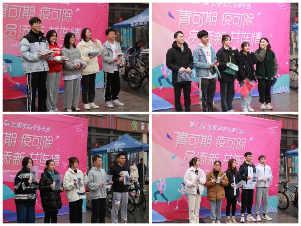 作为远景学院的传统项目和特色活动,冬季长跑活动自2014年起到2021年已经走过了8个年头。疫情当下,凛冬已至,在这个特殊的年月里,远景学院的学子们不畏寒风,在公路上团结队员,挥洒汗水,歌颂了国人挺进“决赛圈”的抗疫精神,促进了大家对生命至上,尊重科学,命运与共等抗疫精神的理解。增强了远景学院全体学生以及各学院队伍的健身意识、竞争意识、拼搏意识、团结意识。此次活动为远景学子以及各学院队伍搭建了一个全员体育平台,将运动、健康融入到校园文化生活中。体现了全体成员团结拼搏、昂扬向上的精神风貌,为社会培养身心健康、积极向上的完满型人才奠定基础。在这个冬天,远景学子们以青春之火,焚病毒之爪,聚远景之情。