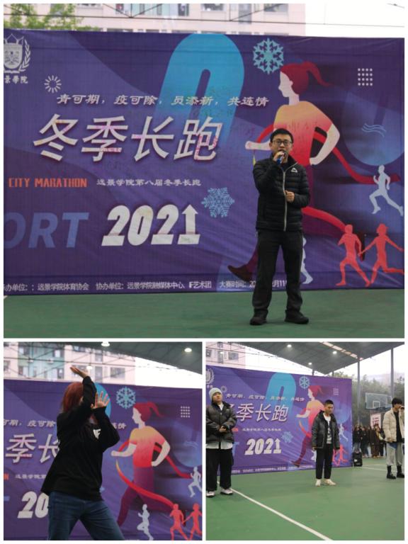 12月11日早8时,由重庆移通学院远景学院团总支学生会主办,重庆移通学院远景学院体育协会承办,重庆移通学院远景学院青年志愿者协会协办的“第八届冬季长跑”活动于风雨操场顺利启动。远景学院学工副院长李军院长、郭淼老师和付海明老师应邀出席,本次冬季长跑活动由刘颖姿和张延博同学主持。远景学院全体2021级新生和部分2020、2019级学生和其他院系代表队约150人左右参加了本次活动。