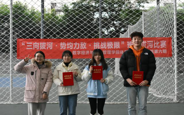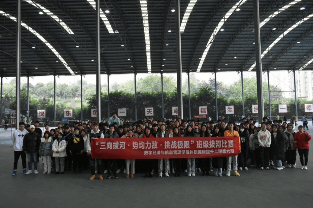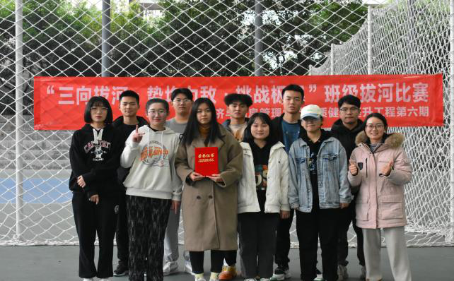 临近期末,为缓解大一班级同学考试焦虑,提高班级凝聚力,数字经济与信息管理学院体质健康提升工程第六期:“三向拔河·势均力敌·挑战极限”班级拔河比赛于12月17日下午14:00在C区风雨球场举行。莅临比赛现场的有数字经济与信息管理学院副院长任瑞娟老师,竞技体育版块两位指导老师吴生亮老师、汪立老师。