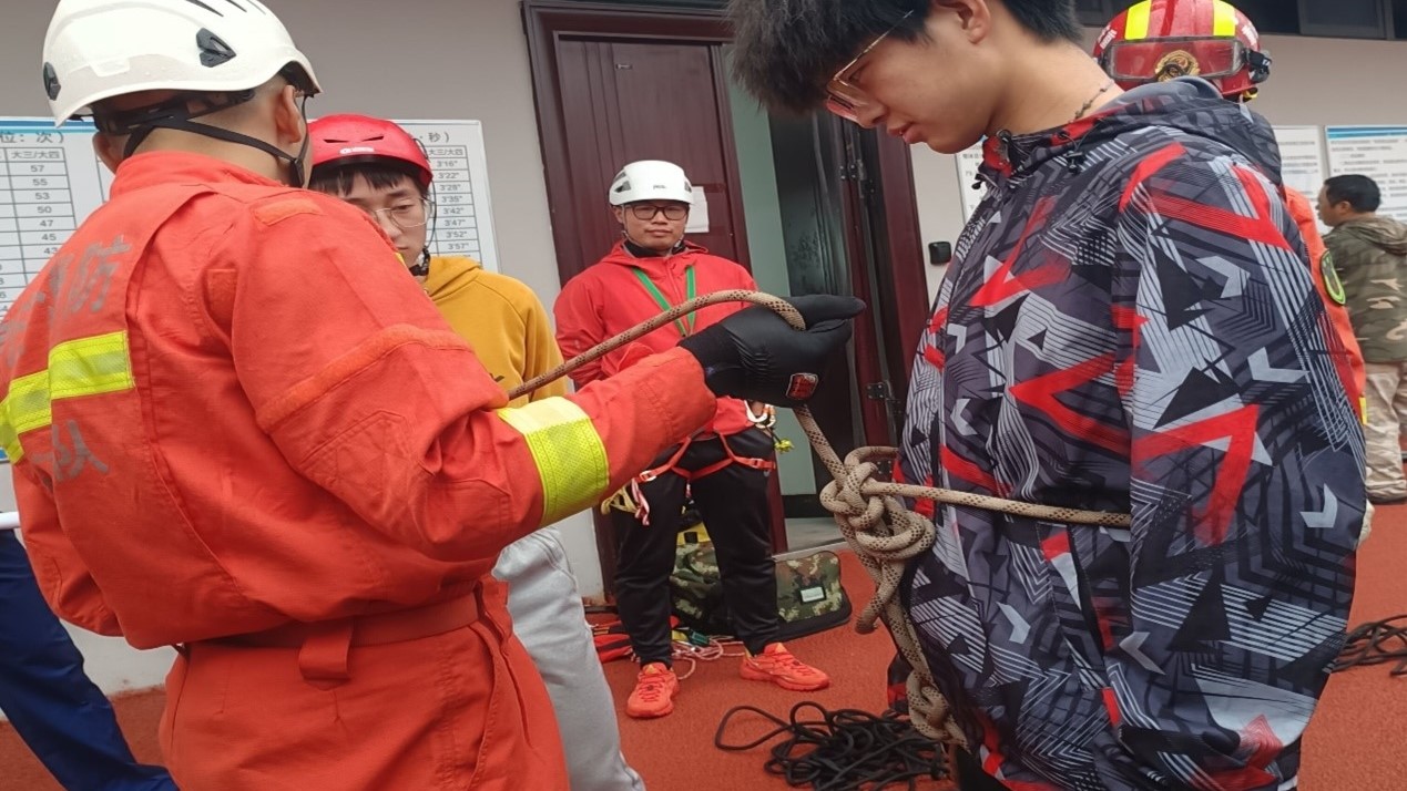 绳索技术专业性强,应用范围广,训练活动期间,消防员展示如何用自制上升系统,实现单绳上升和快速单绳下降,熟练的动作的技术让同学们大开眼界。