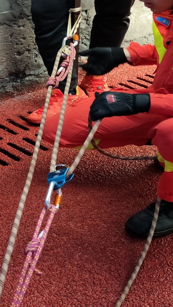 为方便同学们更直观的学习理解绳索技术的应用,九龙消防救援站胡指导亲身示范如何救出被困人员,详细的讲解,行云流水的操作让同学们记忆深刻。