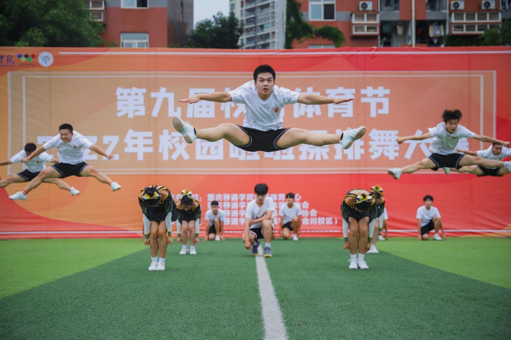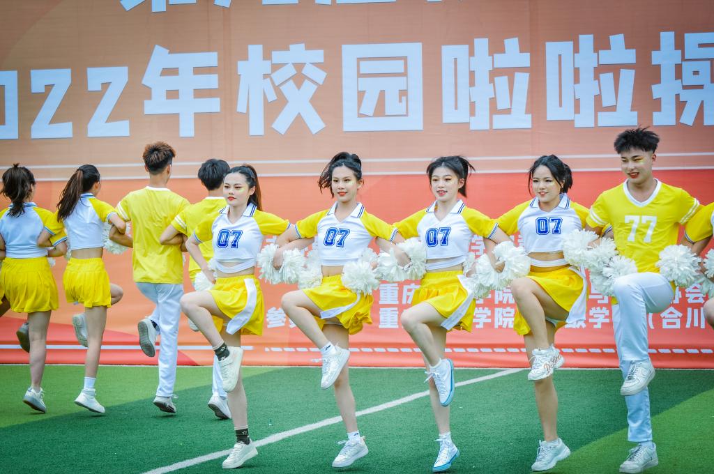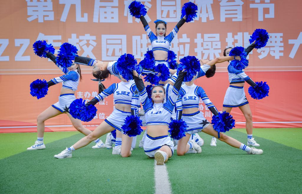 “每一个不曾起舞的日子都是对生命的辜负”在这春夏交替之际,五月的热情随着啦啦操尽情的释放,五月,一个草木繁茂、鲜花盛开的时节,空气中弥漫着青春的气息。而在5月21日下午15:00在校运动场我们也迎来了重庆移通学院第九届校园体育节之2021-2022学年校园啦啦操排舞大赛。本次活动旨在让同学们更加的了解啦啦操,培养拼搏进取,团结协作的竞技体育精神,展示移通学子青春活力状态。