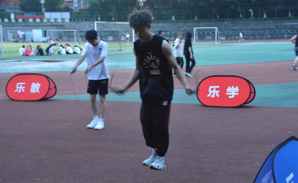 夏天到来,傍晚七点半正是锻炼身体的好时机,为了推广普及跳绳运动,打造特色大众体育项目,智能工程学院定期七点半组织跳绳爱好者带领同学们跟随音乐跳动起来,并设置一分钟单摇、双摇、十人长绳等项目的打卡榜单,使广大同学积极参与到跳绳运动中,以榜单、常规开展的方式推广跳绳运动、培养同学们的运动习惯。本次活动在2022年5月31日a区田径场如期展开。