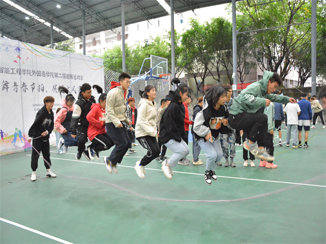 为了推广普及跳绳运动,打造特色大众体育项目,智能工程学院开展了跳绳运动会、“跃动七点半”等活动。跳绳设置一分钟单摇、双摇、集体8字跳绳等项目,以跳绳运动会、跳绳记录打榜、跳绳技术分享交流的方式推广跳绳运动,培养同学们的运动习惯,使广大同学积极参与到跳绳运动中来。
