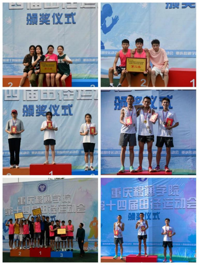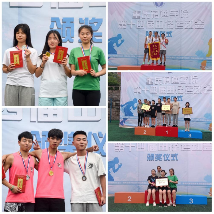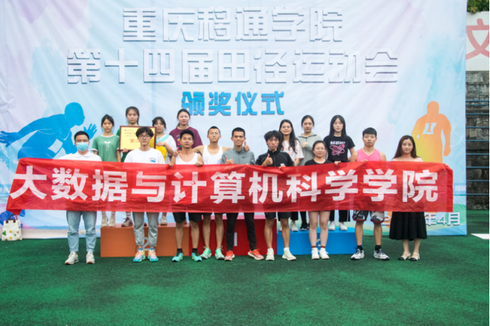 本学期,我院取得校园游泳比赛团体第一名、“阳光杯”系列赛事女排和女足冠军、男篮和男足季军,啦啦操排舞大赛团体总分第四名的好成绩。尤其是在第十四届田径运动会中,我院更是取得了历史以来的最佳成绩——团体总分第二名,其中:唐良均同学获得女子1500米第八名,胡俊豪同学获得男子三级跳远第七名,孙淋颖同学以4’21”23的成绩打破记录获得男子1500米冠军,龚灿同学以4’31”52的成绩打破记录获得男子1500米亚军。左立同学获得男子铅球冠军;韩旭同学获得男子跳高亚军;杜志浩同学获得男子100米季军;刘静、郭南、王雪同学分别获得女子400米亚军、季军和第六名;男子、女子4*100接力赛都获得了季军。
