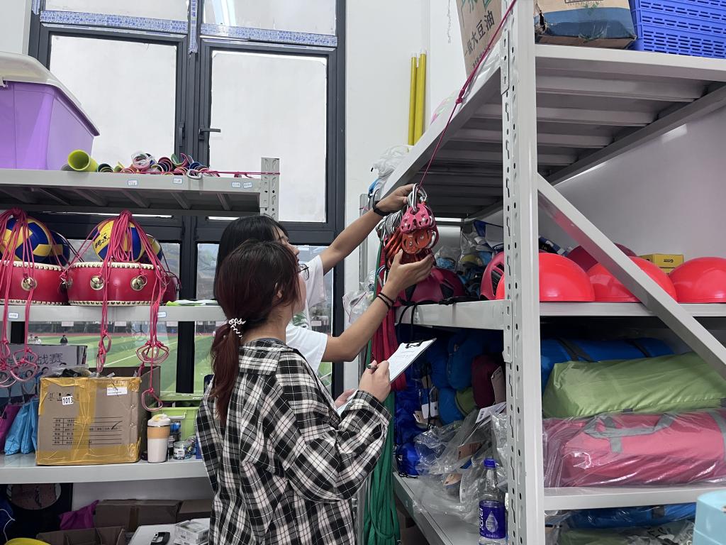 会议结束后,王碧铄主任与教练们一起对教学新场地进行实地考察,规避所有可能存在风险的可能性。虽然说目前高空基地还未修建成功,但高空器材要定期维护和整理。随后大家又一同去往器材室规整课程物资,对其进行整理归类,为后续课程做好充足的准备,确保之后课程的可实施性和安全性。