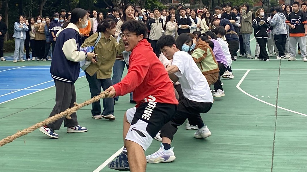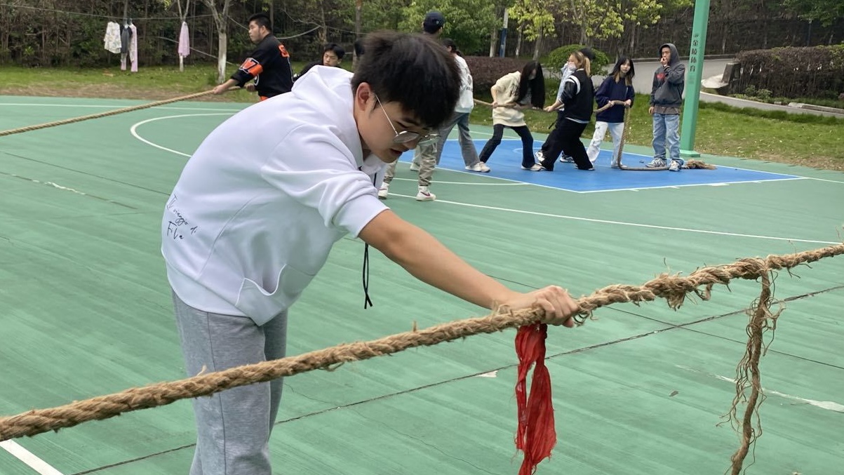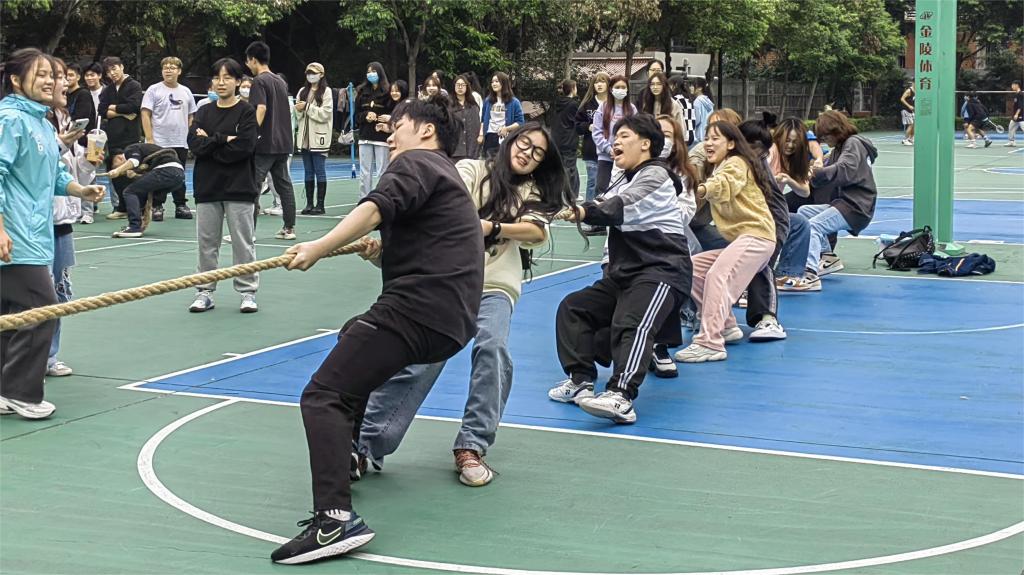 在竞技体育协会指导老师王璐老师、干部们的带领和指导下,比赛队伍陆续入场,工作人员们各司其职。随着裁判员的一声令下,各位同学都卯足了劲儿,涨红了脸,抓紧绳子,全力以赴。
