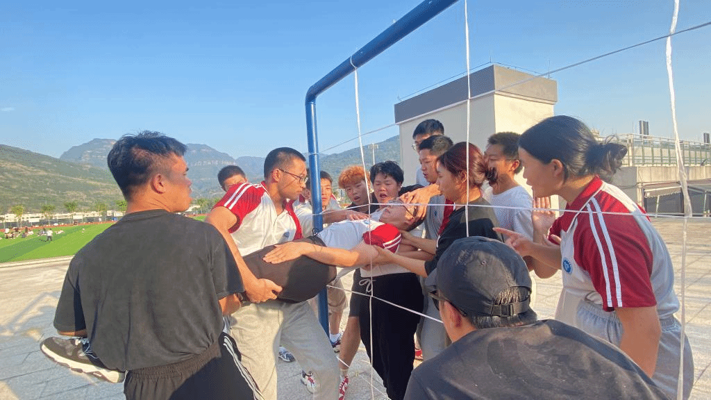 课程之初,13、14班同学共划分为四支队伍,并设计队名、队旗及队型。虽然两个班级已经进行了一年半的课程,但是团队成员彼此之间并非特别了解,在进行团队展示时,都略显拘谨,这次课程的目的就是为了让他们“白开水”似的友谊蹦出绚烂的火花。相信通过简单的整顿后迎接他们的是机遇也是挑战。“信任背摔”“雷阵”“穿越电网”“七巧板”……这些项目都是需要极强的团队协作意识才能完成的,或许在项目进行中时,同学们还未反应过就已经被迫结束挑战,但是在后面的反思中意识到自己的不足和团队的问题,每一个挑战都有进步,每一次总结总有成长。