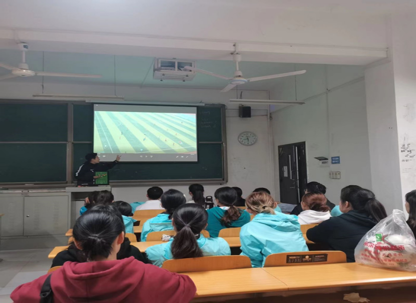 2022年10月26日,移通女足针对上次与学院北纬俱乐部友谊赛的比赛视频,进行了赛后分析。罗诗艺教练针对各个队员不同位置进行理论指导。对前锋的跑动接球、中场的传接技巧、后卫的位置防守都进行了详细讲解,让队员们在比赛中更清晰了思路,结合理论再运用到球场上去。