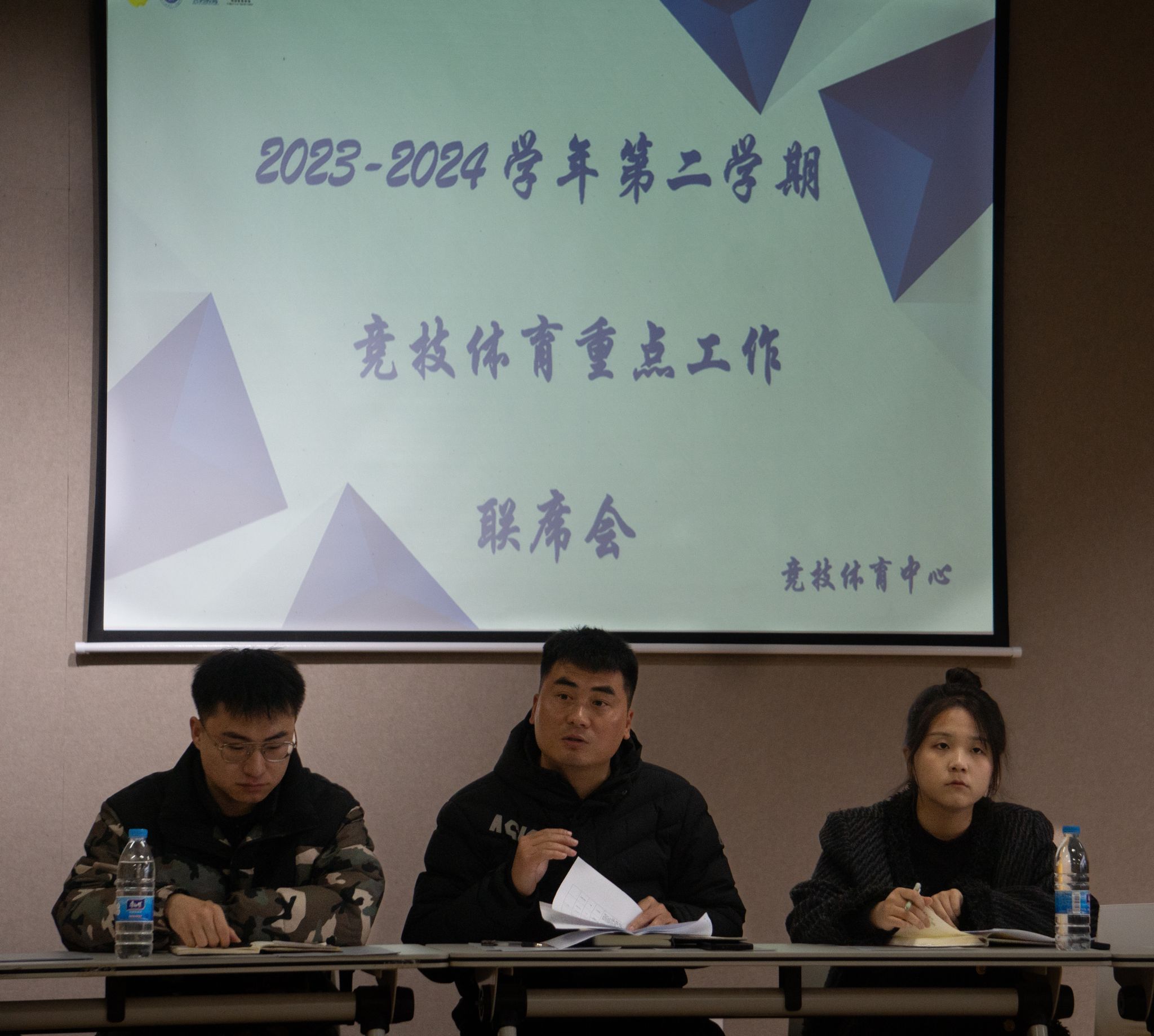 本次会议的主旨是为2023-2024学年第二学期竞技体育的重点工作进行更为细致的划分。各学院团总支书记以及体育板块负责老师齐聚一堂,分享经验,共商未来,为丰富校园体育生活注入更多活力。新学期新起点新高度新挑战新期望,我们扬帆起航再出发,不辜负每一份认真,也不辜负每一份信任。