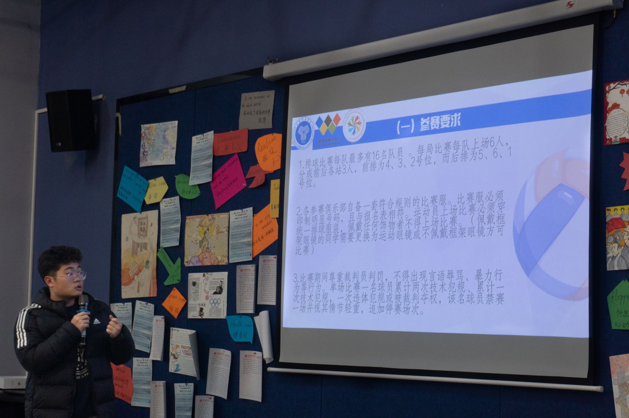 为确保我校第三届“瀛山杯”俱乐部系列联赛排球比赛如期开展。竞技体育中心于2024年3月6日12:15在綦河书院二号楼两句演讲培训室召开了第三届“瀛山杯”俱乐部系列联赛排球赛赛前联席会。本次会议主要分为赛制安排与赛程安排两个部分。其主要目的是向各俱乐部介绍本次俱乐部系列联赛排球赛的赛事赛况,以便第三届“瀛山杯”俱乐部系列联赛排球赛更圆满地开展。