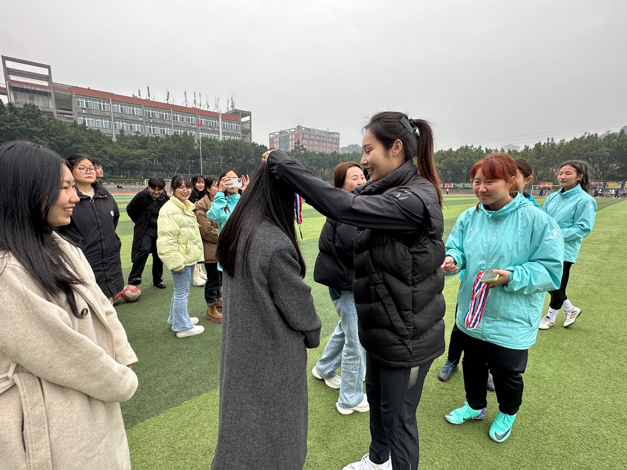 本次活动由四个游戏组成,合作运球、抢圈游戏、足球猎人、合作射门。参与者们更深入地了解足球运动的魅力。同时,现场还有专业的足球教练进行技术指导,帮助参与者们提升足球技能。活动最后,校女足罗诗艺教练及祝佳欣教练为参与此次活动的同学颁发纪念品和奖章。