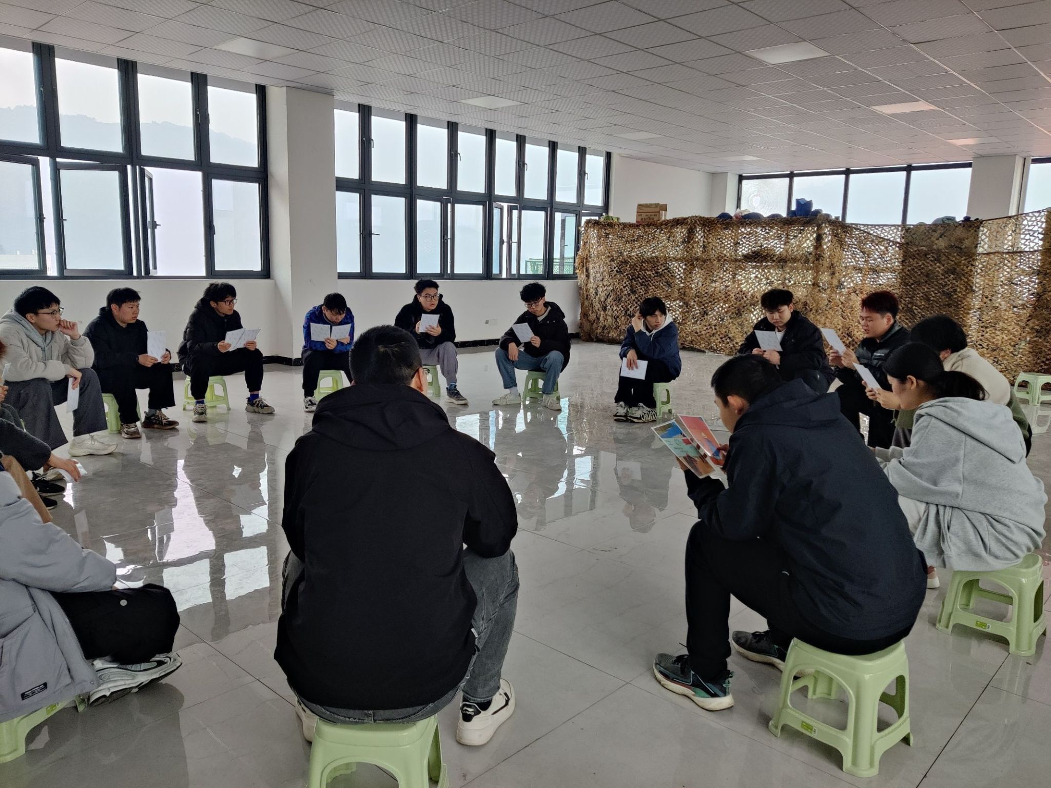 在这两天的时间里教练带我们了解、学习到了很多在教室里学不到的新知识。3月4日8:00,第一天,所有人都按时到达指定地点集合,初次见面教练就开始给三个班的同学分队,为了更好地体现出营地教育拓展训练课程的意义,教练并没有让同学们自己选择组队,而是以一种看似非常随机的方式把三个班的同学分成六个小队,就这样营地教育拓展训练课程的序幕正式拉开。