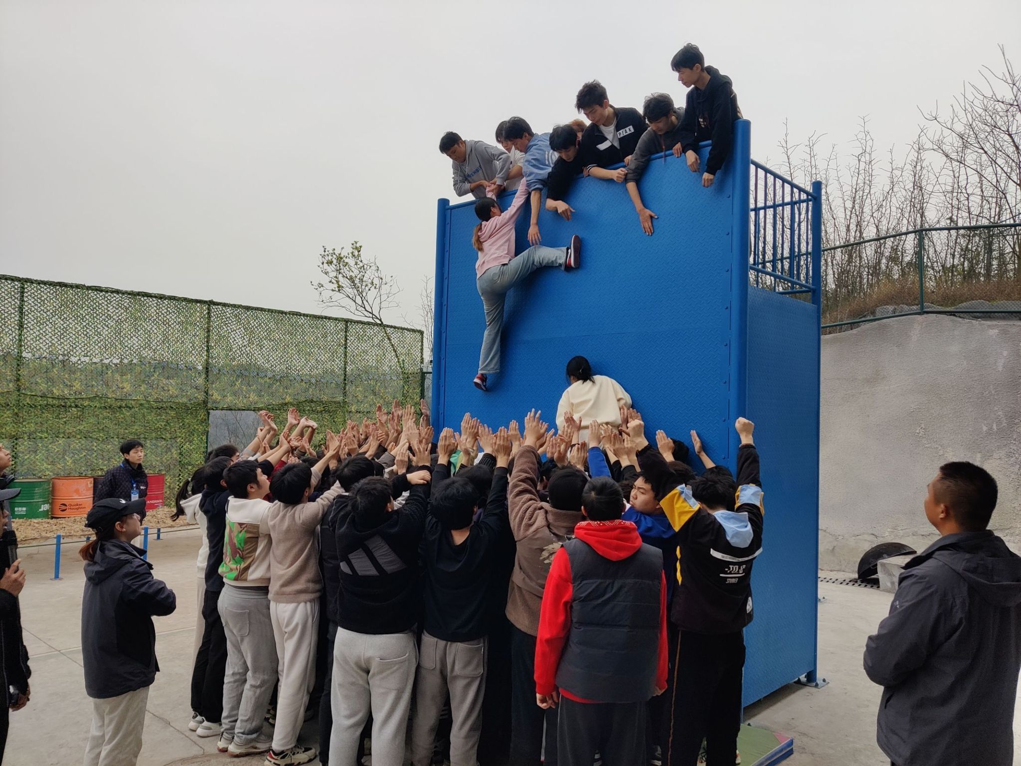 在“盗梦空间”项目中,同学们共同分享信息,集思广益,找到了最终的答案;在“信任背摔”项目中,他们克服了本能的恐惧,充分信任队友;在“扫雷”项目中,他们步步试错,最终找到了一条安全的通道;而在攀岩项目中,他们互相鼓励,勇于挑战自我,直面内心的恐惧。