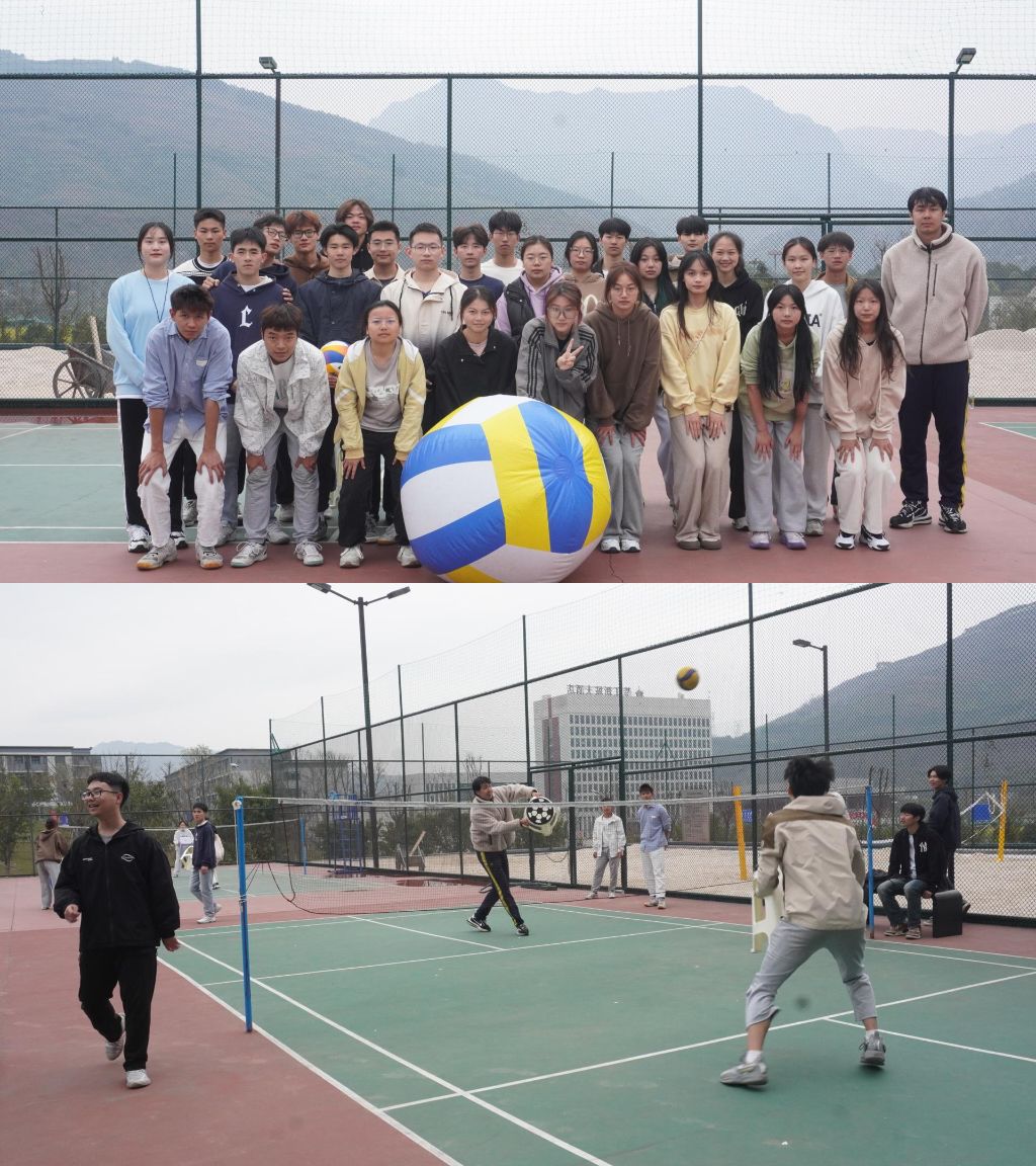 两位校队教练向同学们介绍了排球的发展史,让同学们了解了排球的发展历程和对排球运动的热爱。带领同学们进行了排球趣味小游戏。如随机组队,用巨型排球进行隔网对抗,与校队同学互动交流、体验排球技术动作。经过一系列的活动提高了同学们对排球的乐趣,增强了校园活跃气氛,展示了排球魅力。