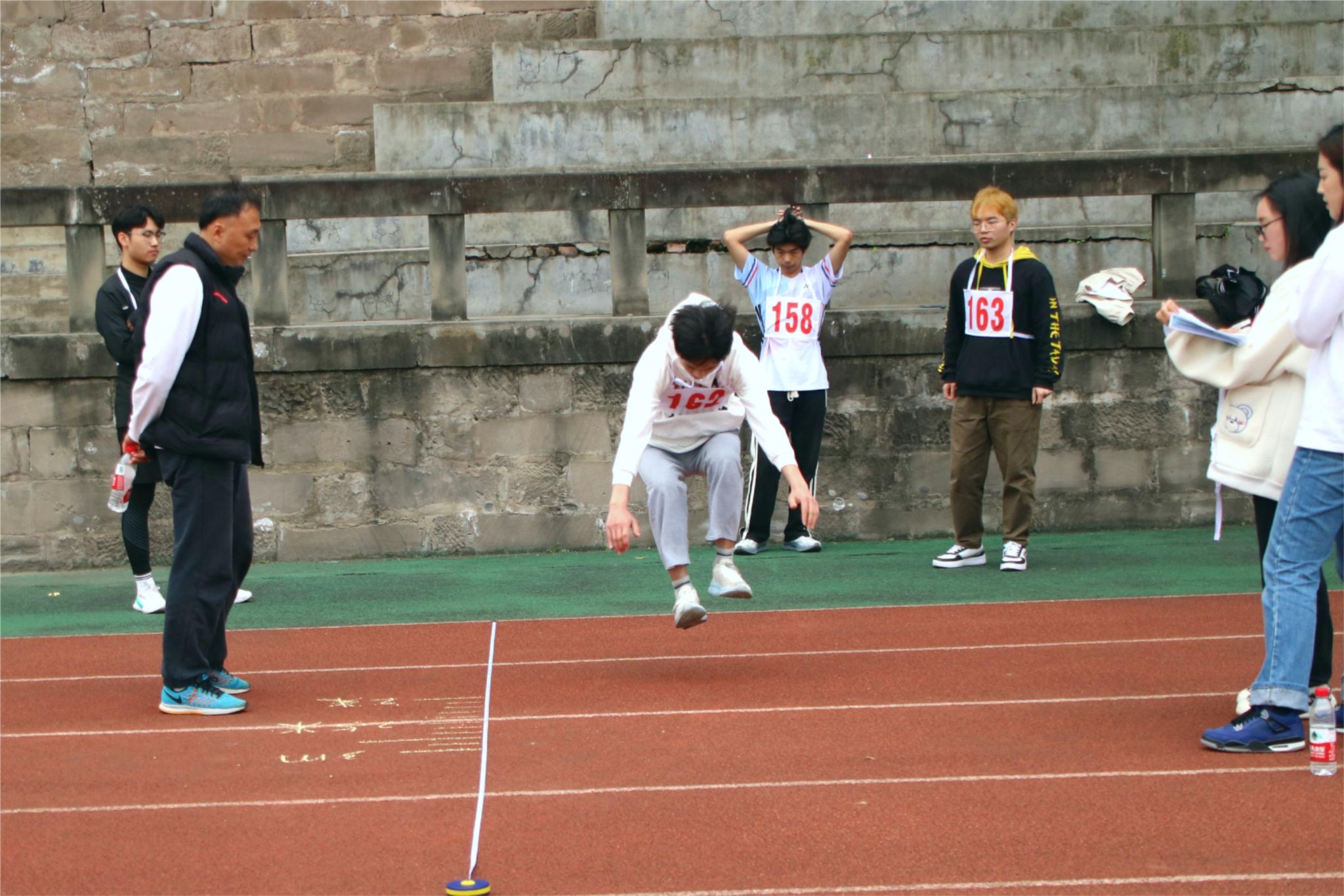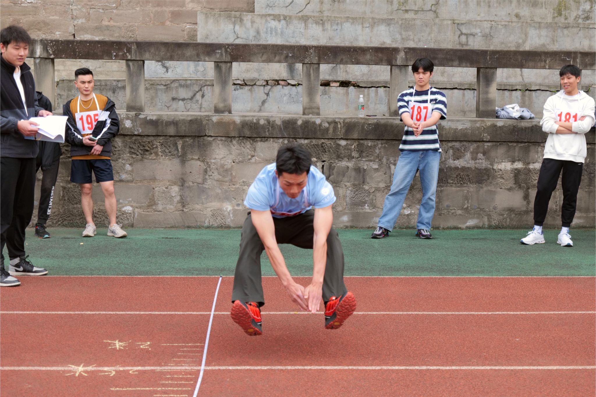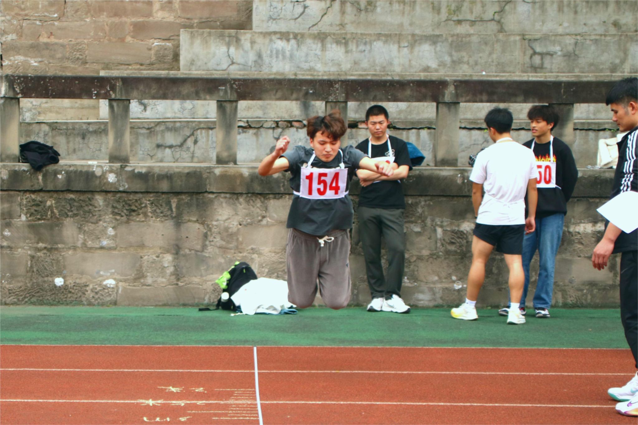随着裁判以及参赛人员的就位,2024年重庆移通学院(合川校区)体质测试全能挑战赛正式开始。运动员们个个精神饱满,斗志昂扬,为取得好的成绩而摩拳擦掌。在立定跳远项目上,运动员们站在起跳线上,聚精会神,目光直视前方。随着双臂的有力摆动,他们身体微蹲,瞬间爆发出惊人的力量,奋力一跃,身姿灵活轻巧,犹如翱翔的雄鹰。因为正青春年少,所以他们不怕困难与挑战,在每一次起跳中感受着超越自我的喜悦与振奋。