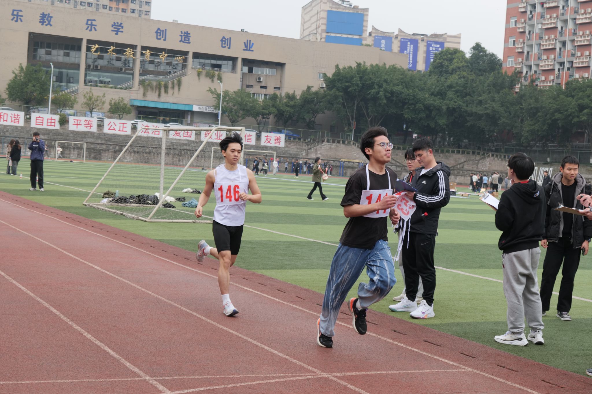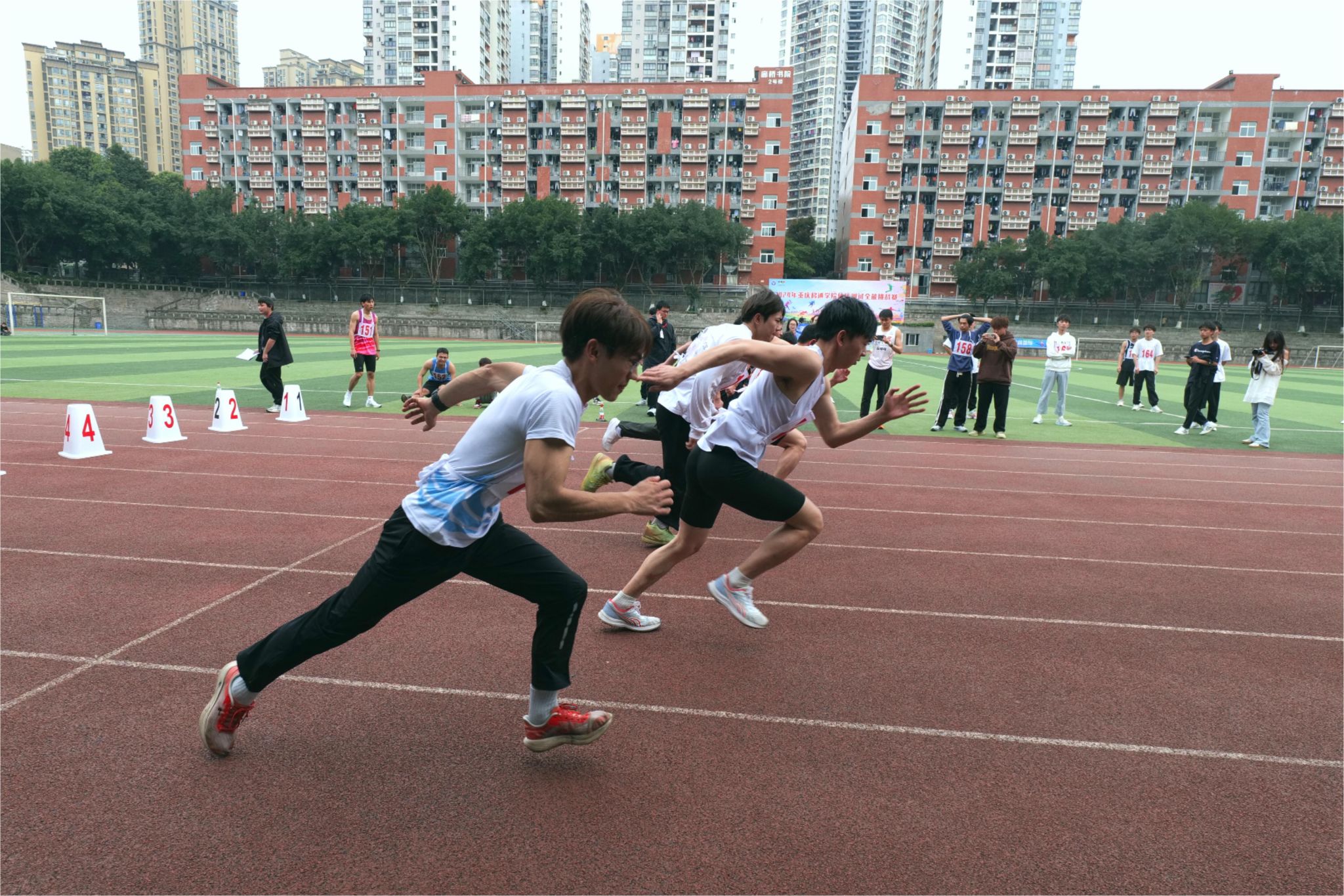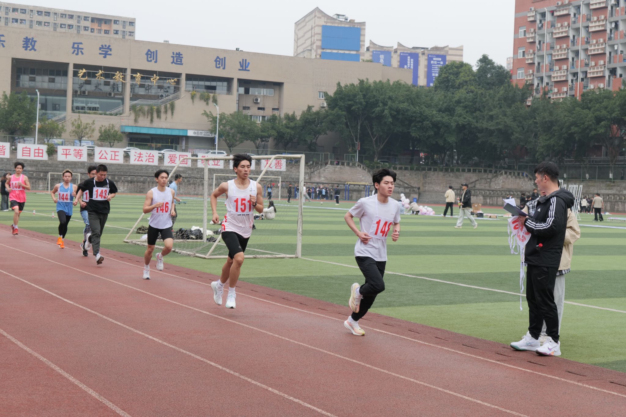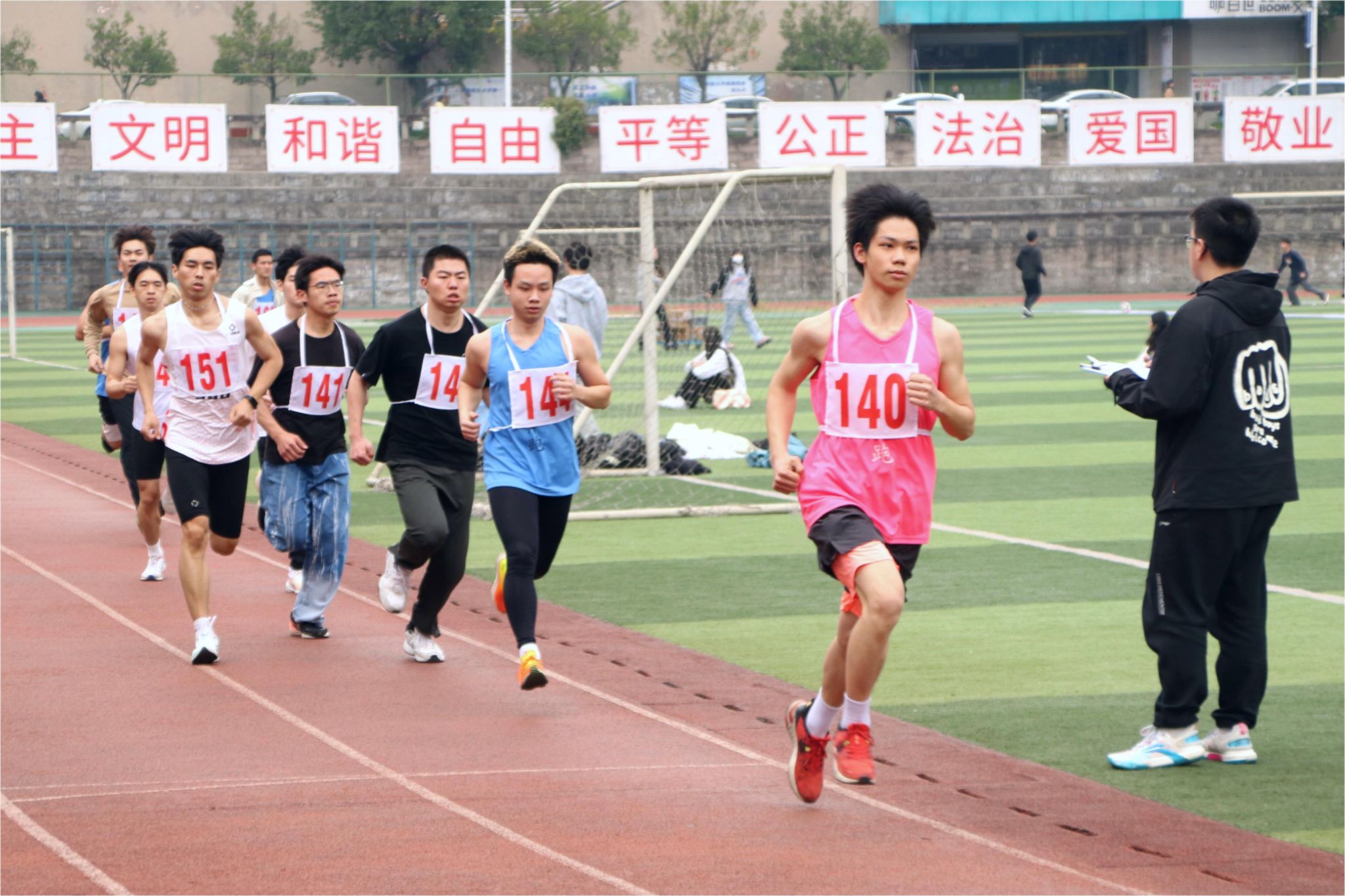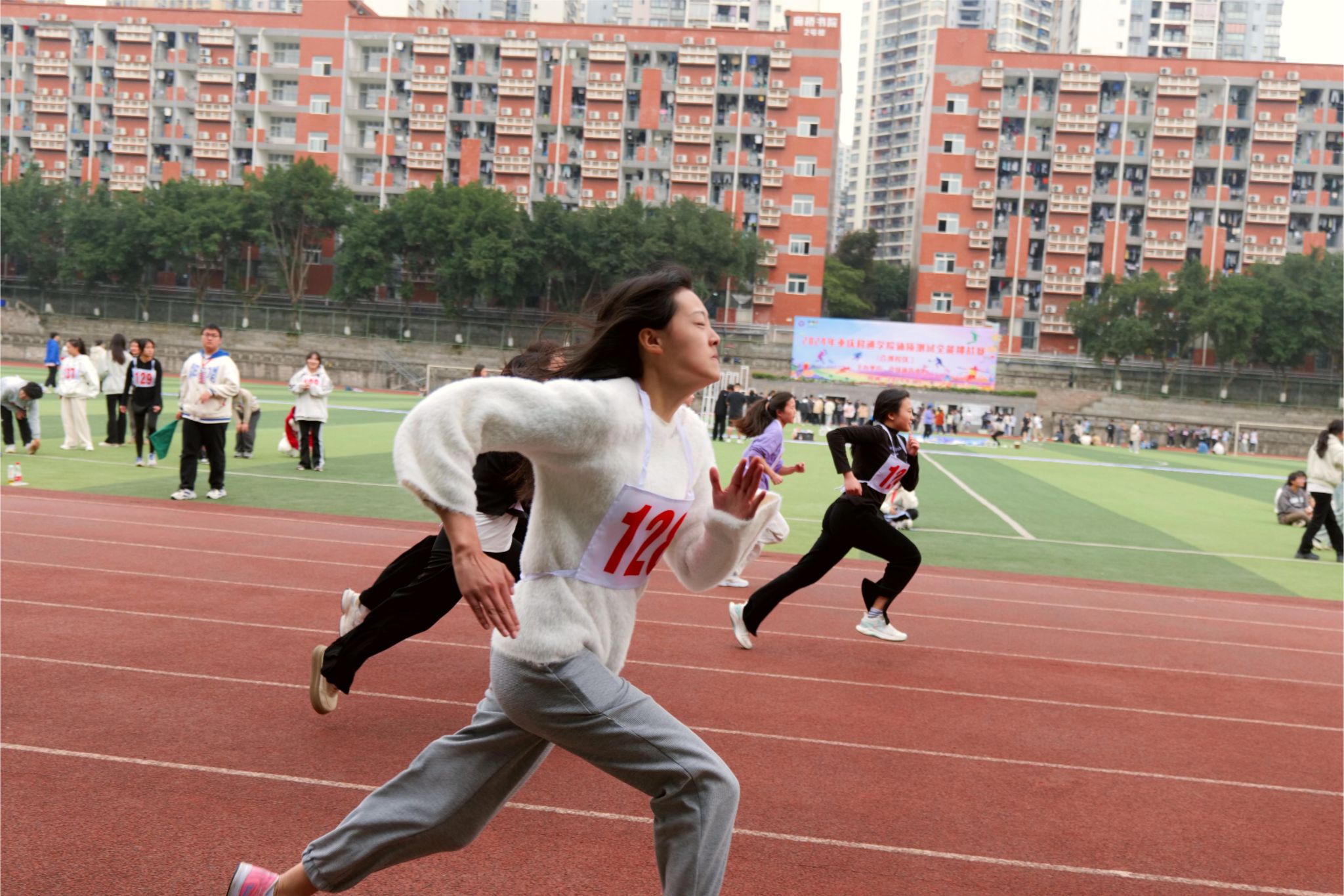 少年人,总是意气风发。选手们昂首挺胸,时刻准备着出发。“预备……跑!”,听到裁判的口令,他们迅速抬头,看向远方,起步奔跑。一声令下,他们脚下生风,身姿矫健,神采飞扬。400米!800米!1000米!在阳光的照射下,他们的步伐坚定,即使再疲惫不堪,也仍旧向前奋力奔跑。他们用汗水浇灌希望,用拼搏和努力,展示着向上的生命力。