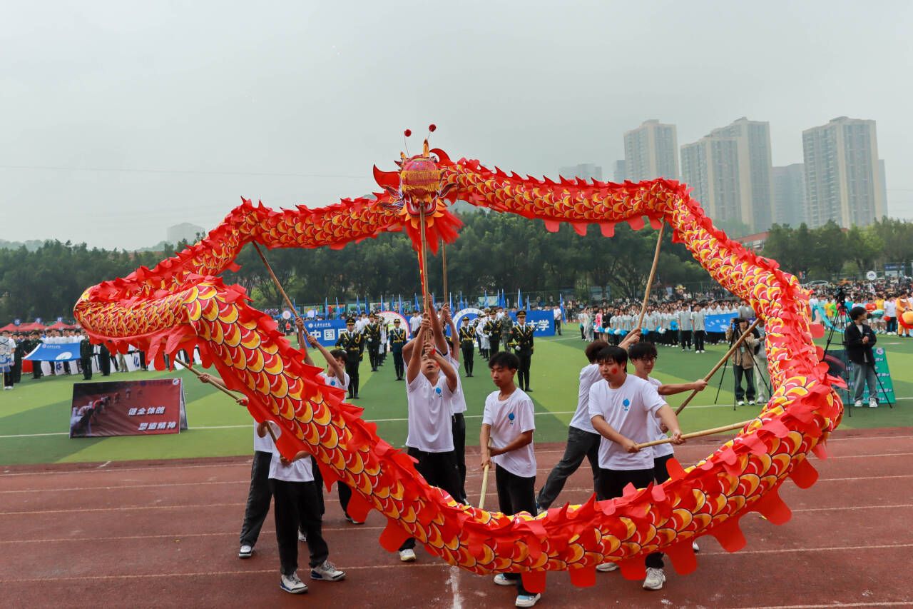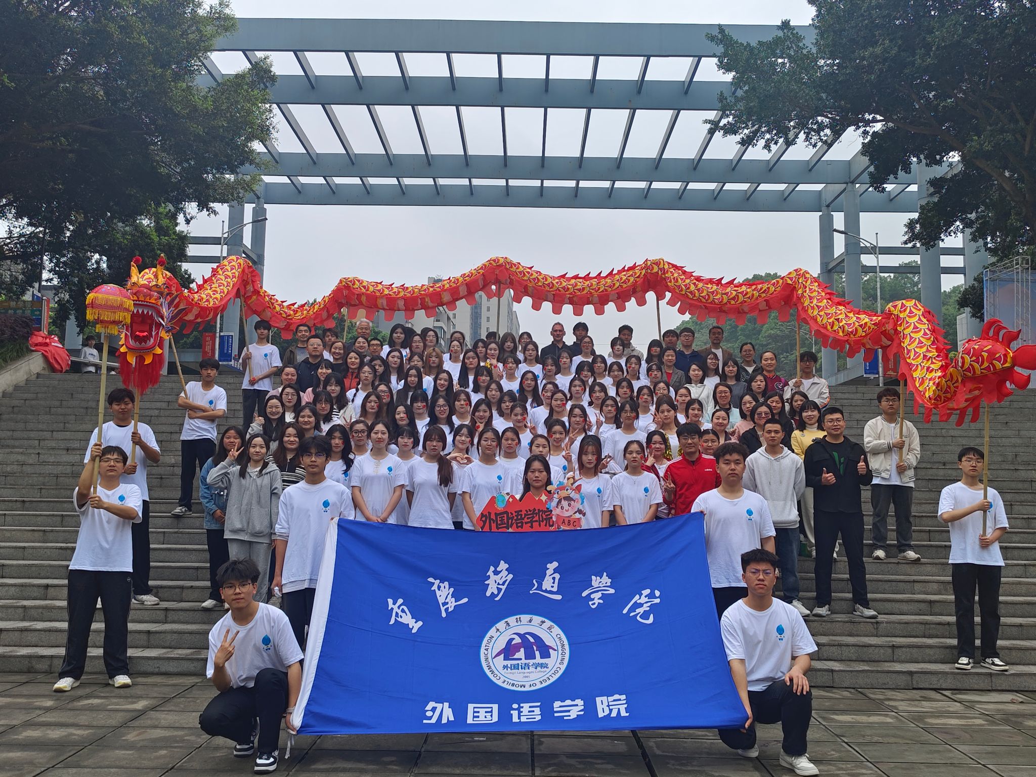 首先开幕式上映入眼帘的,便是外国语学院精心编排的方阵表演。今年我院方阵表演中创新性地加入了舞龙表演,这不仅因为今年是甲辰龙年,更是映射出了我院结合外语特长优势,将语言赋能文化育人中,让优秀传统文化活起来的特色培育目标。