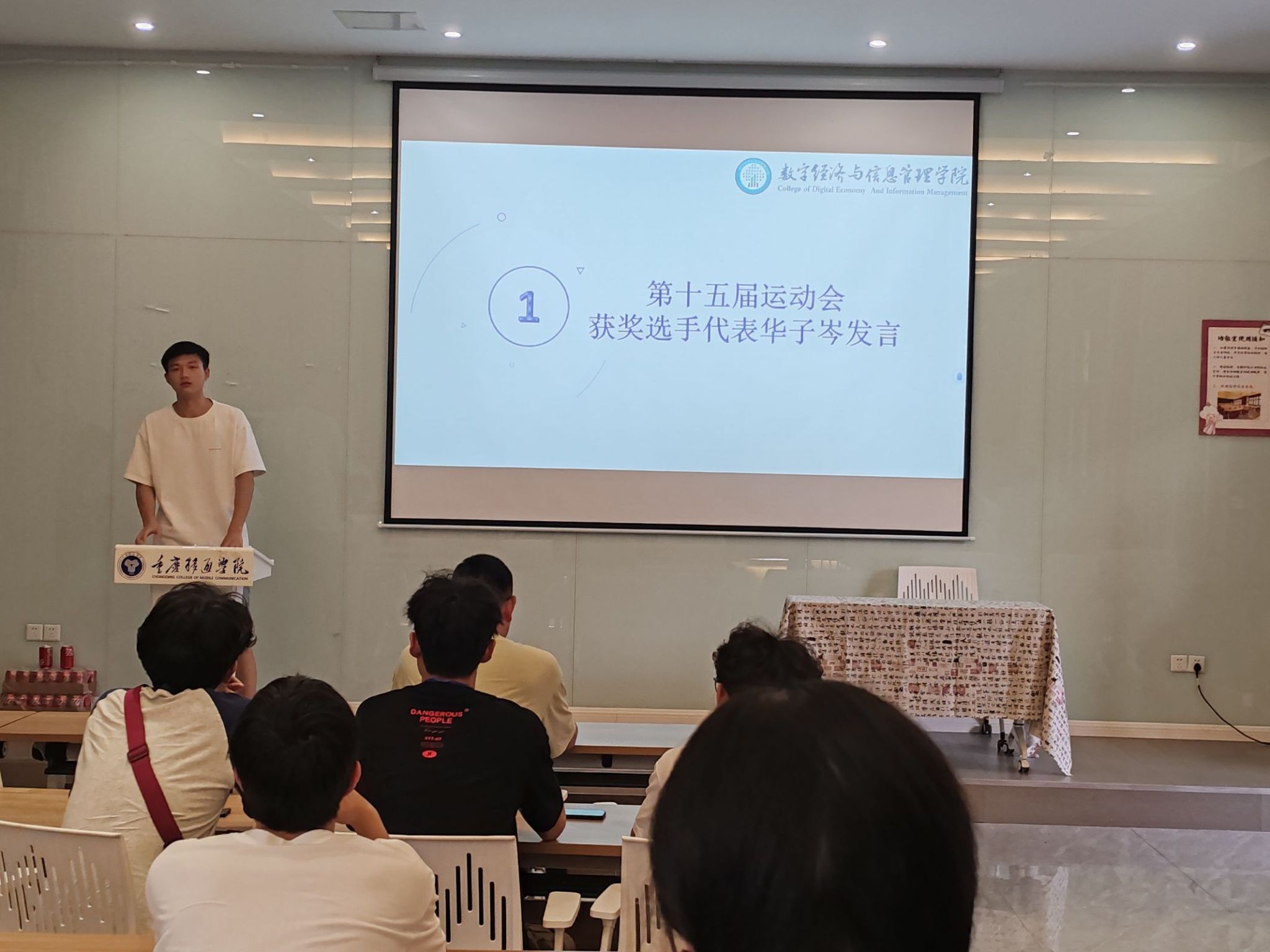 为了迎接即将到来的第十六届运动会,保障运动会的有序进行,鼓舞我院运动员的士气,数字经济与信息管理学院体育协会于4月15日下午18时在观云书院举办了运动会赛前动员大会。本次会议邀请了数字经济与信息管理学院竞技体育板块指导老师王健老师和运动会全体运动员,旨在鼓励所有参赛队员积极备战,充分展现我院学生的精神风貌和体育风采。