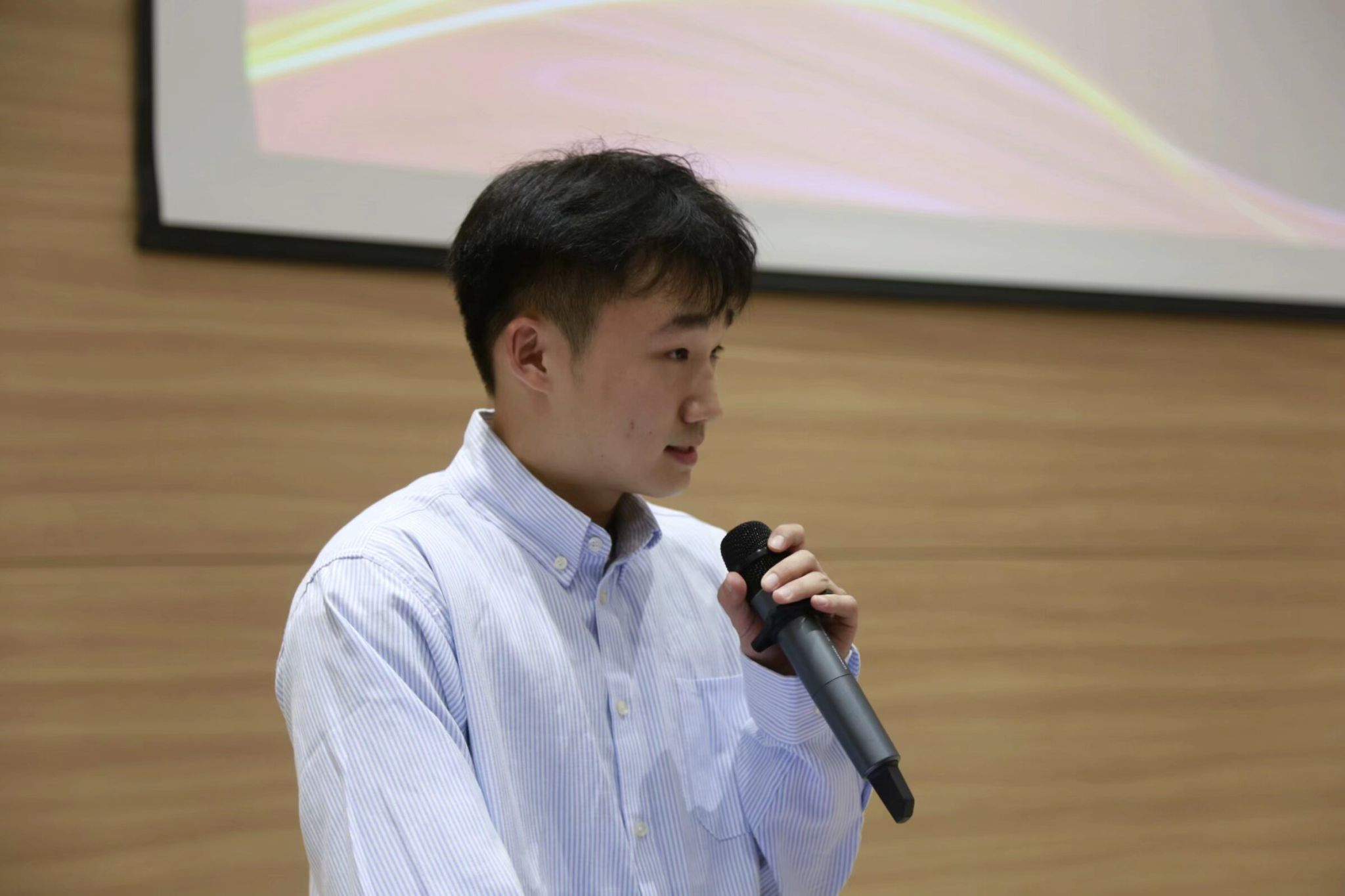 队长领航,开启新征程。杨博文同学作为队长代表进行了讲话。他回顾了自己在队伍中的成长历程,分享了比赛中的点点滴滴。他表示,过去的时光充满了挑战与收获,每一次的胜利都离不开队友们的团结合作和辛勤努力。他希望新队员们能够继承和发扬这种精神,为队伍注入新的活力,为艺术传媒学院的体育、艺术事业贡献自己的力量。