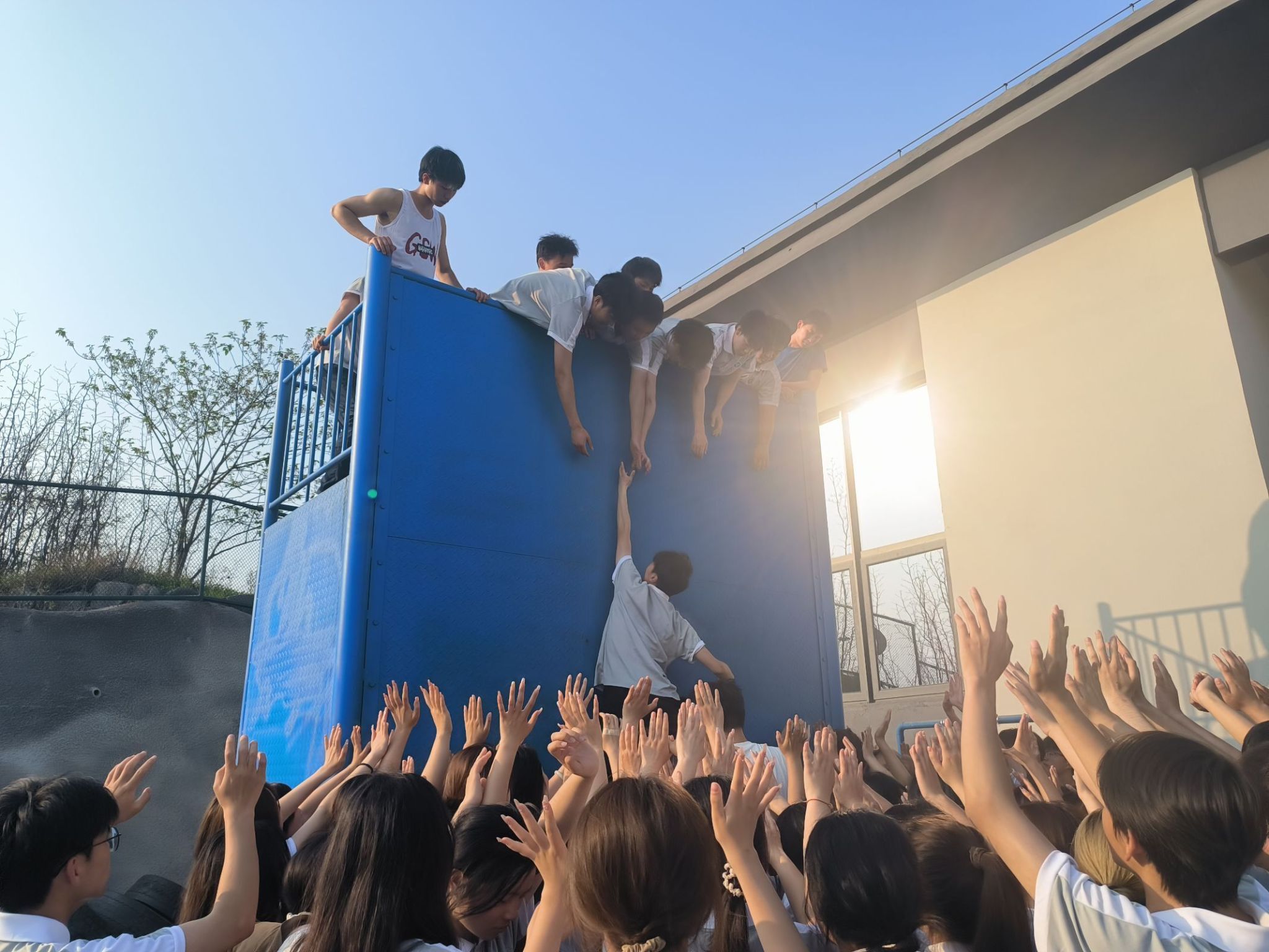 在最后一次训练中,同学们面临一项艰巨的任务——翻越四米二高的“逃生墙”。在教练的指挥下,同学们集思广益,共同商讨翻越方案。很多人自告奋勇,自愿搭建人梯,帮助其他同学跨越逃生墙。部分同学率先爬上高墙,在顶端接应地面上的同学,用力将他们拉上逃生墙。期间,同学们积极配合两位队长的指挥,任务进行得井井有条。最终,同学们完成了这艰巨的任务,仅耗时39分钟,比预计用时45分钟还要快6分钟。这次经历让同学们明白,只要大家团结一心,就没有克服不了的困难。
