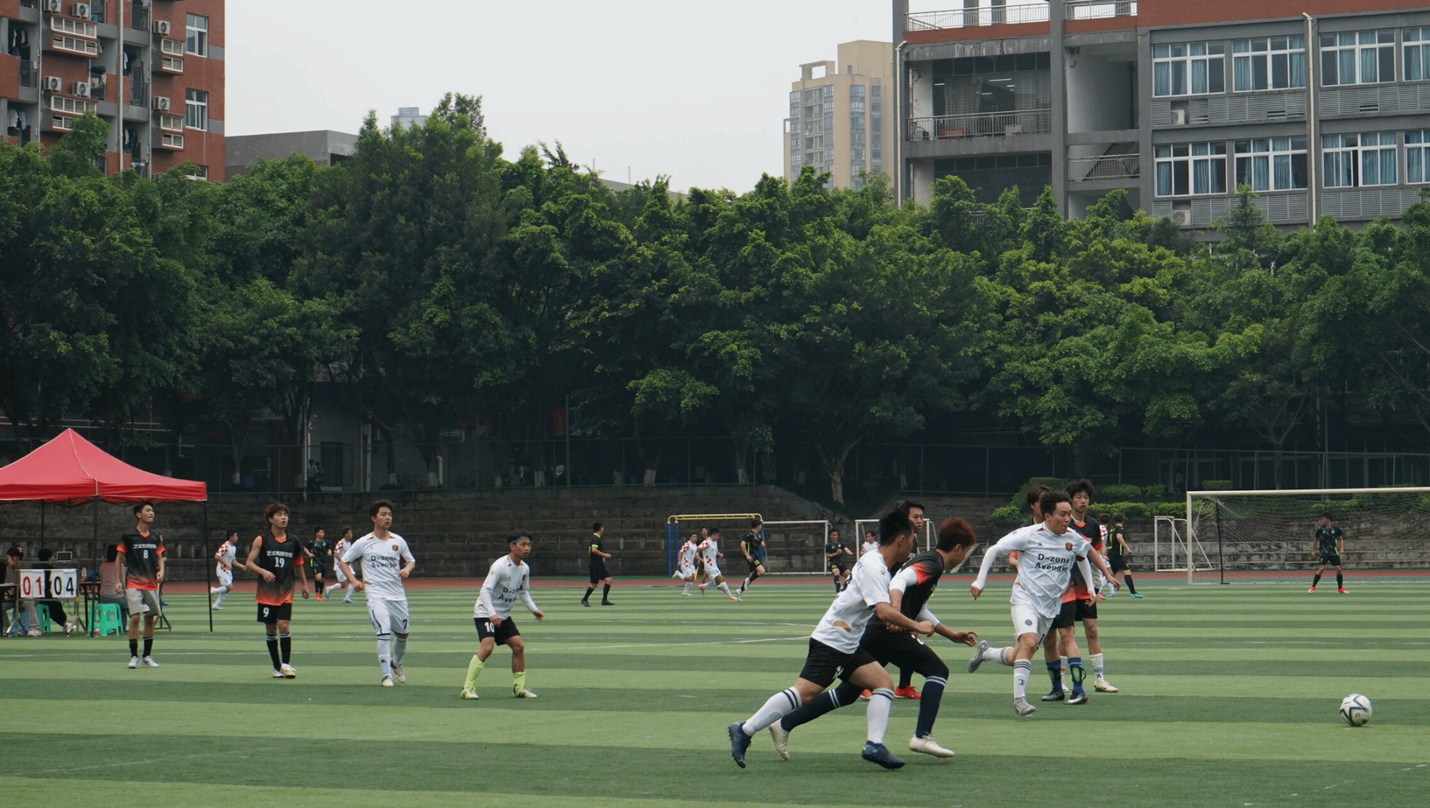 下半场大数据与计算机科学学院攻势凶猛,多次带球进攻。我院队员临危不乱,以守为攻,用严密的防守阵线阻挡了对方的一次又一次进球。双方严防死守,你来我往,寸步不让。赛场上硝烟弥漫,精彩纷呈。在距结束还有不到10分钟时,我院又进一球,把比分扩大到6:2。最终,我院赢得了此次比赛的胜利。