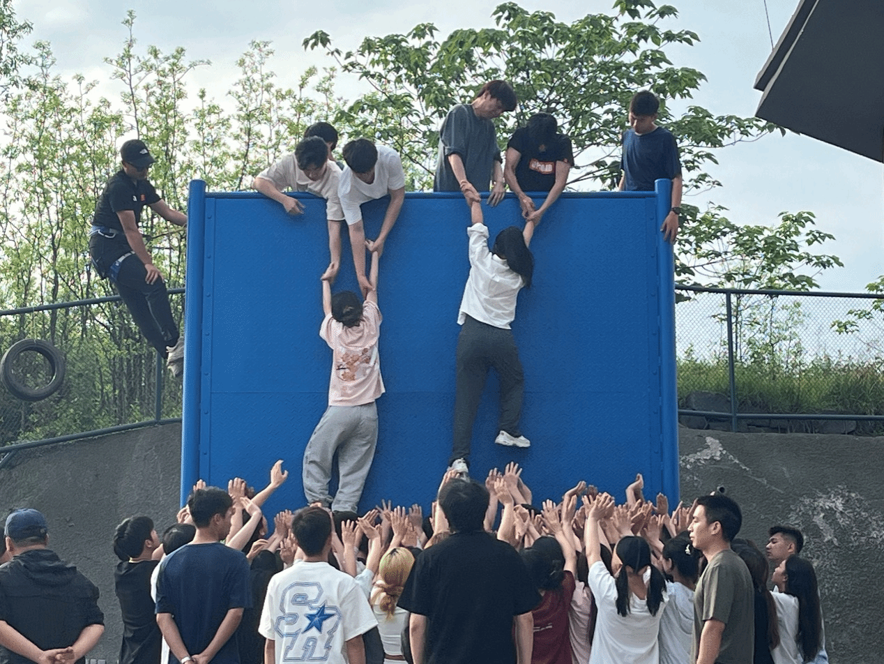 在最后的毕业墙项目中,队员们学会与他人协同作战,互相支持,共同面对毕业墙的挑战,也有人主动承担主梯、副梯与拉人等职责,没有他们或许这个项目就要以失败告终。此时,数字媒体技术专升本2-3班不再是团伙,而是成为真正意义上的团队。