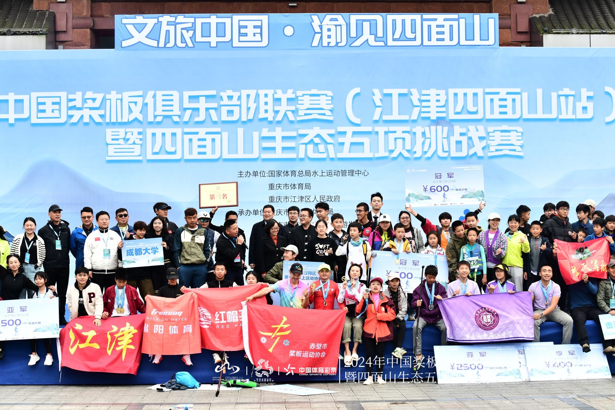 2024年5月2日-3日,中国桨板俱乐部联赛在重庆江津四面山正式拉开序幕。本次赛事活动由国家体育总局水上运动管理中心、重庆市体育局、江津区人民政府主办,江津区体育局、江津区文化和旅游委、四面山管委会、四面山旅游(集团)公司承办。此次赛事不仅吸引了来自全国各地的水上运动爱好者,更成为展示我校桨板运动队风采的绝佳舞台。