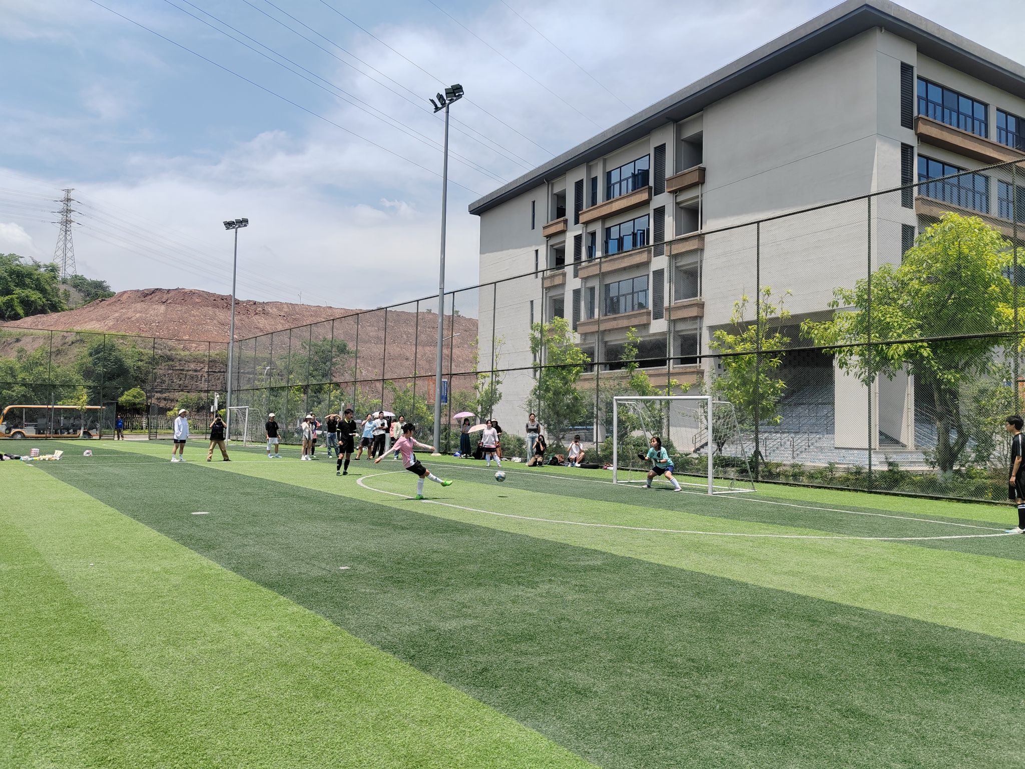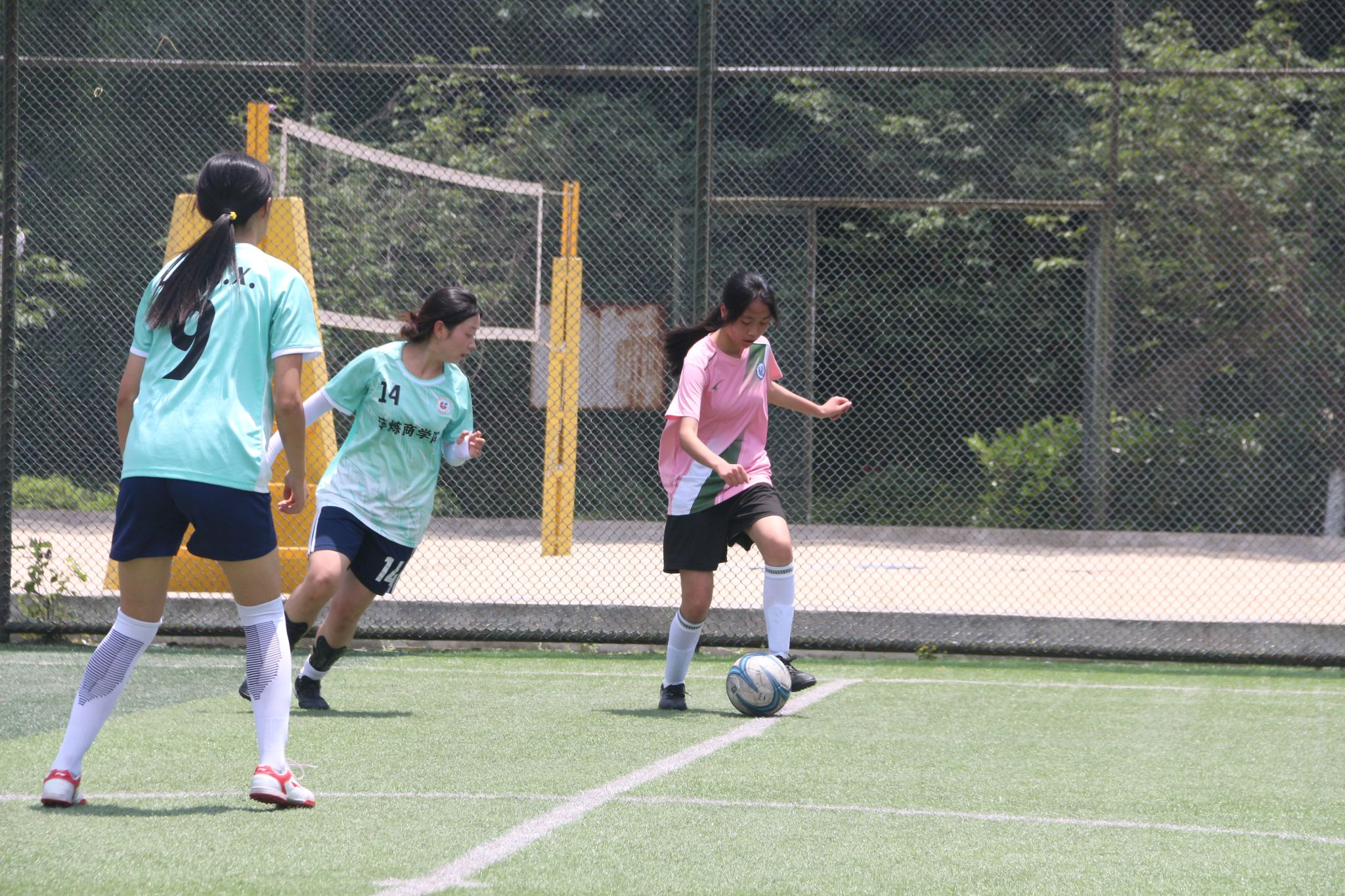 女足姑娘们及时调整状态,迎接着即将到来的半决赛。她们目光如炬,踢进决赛的信念从未停歇。在经历了一个小时绿茵场上的酣战,女足队长丁春灵在上半场上演“帽子戏法”,独进“三元”,为比赛最后的胜利奠定了基础。最终,通信与信息工程学院女足成功进入决赛的舞台,通信“玫瑰”终在阳光下绽放。