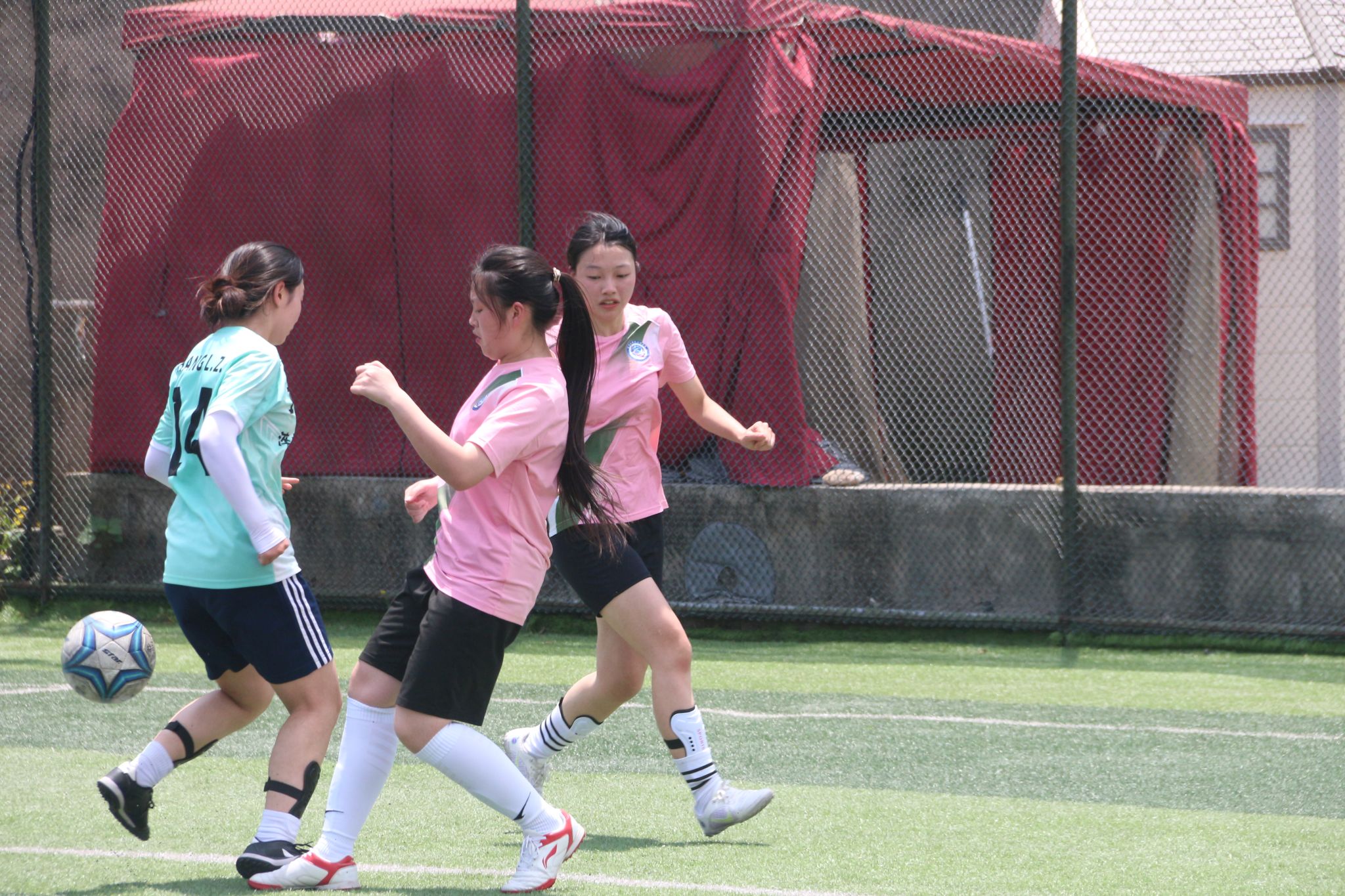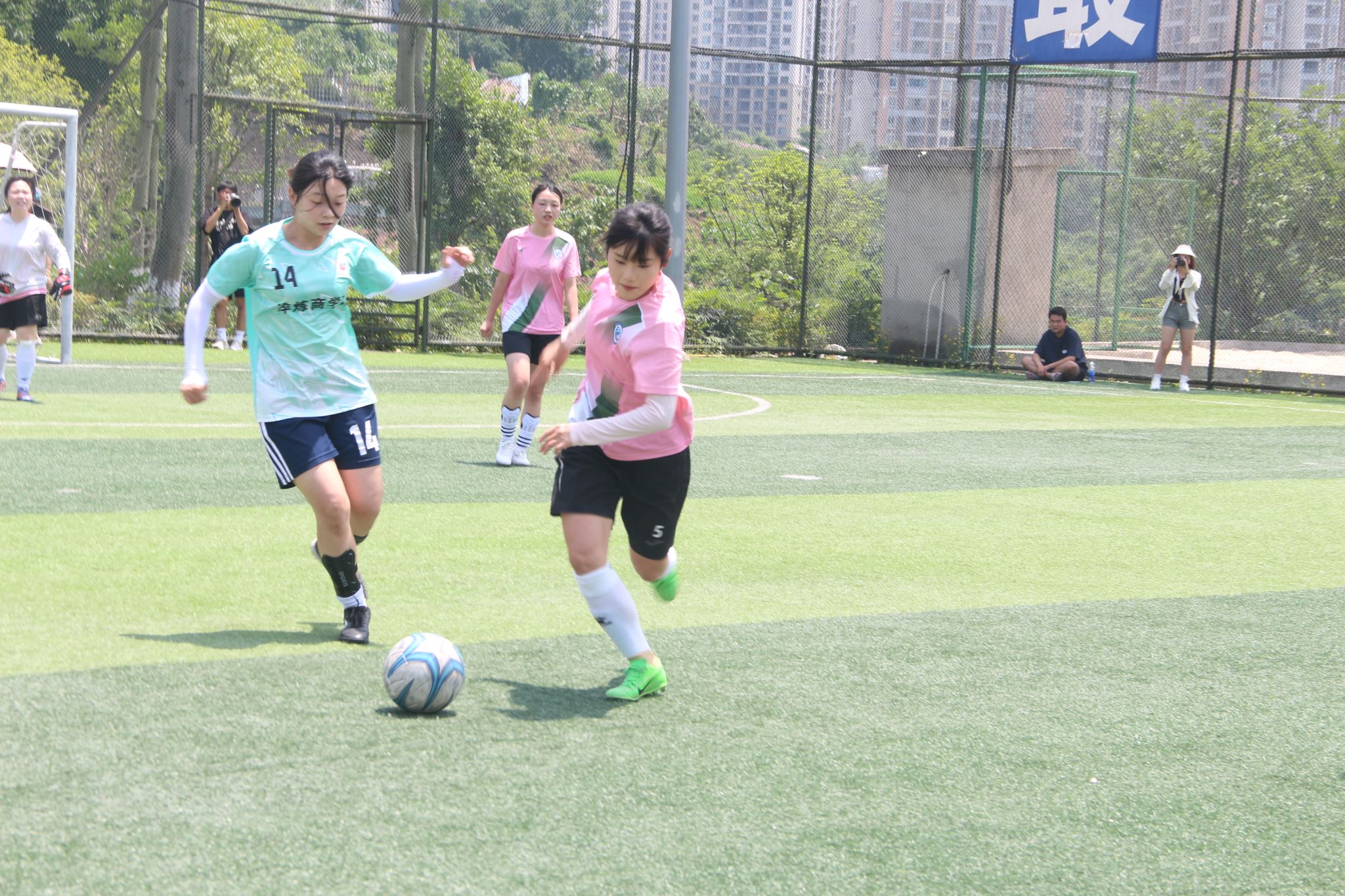 5月的天气酷热难耐,绿茵场上热气腾腾,女足姑娘们怀揣着坚毅的目光走向赛场。随着裁判的哨响,通信与信息工程学院女足姑娘们的决赛开始!比赛进行15分钟,5号女足队长丁春灵边路突破,内切射门,可惜角度太正,守门员稳稳接住;当上半场还剩2分钟时,对手迎来良好时机,她们利用不断传切冲破我们的防线,最终在上半场比赛结束时成功破门。中场休息时,队长丁春灵不断给队员们加油打气,下半场比赛刚开始,队长做出表率,接过9号队员王皓然的传球,一脚远射破门,我们暂时打平对手。或许是姑娘们被队长积极拼搏的精神所感染,队员们加强进攻,队长丁春灵再次接过队友的传球,在临近中场时,一记超大远射,足球应声入网,我们2比1取得领先。对手一次又一次的进攻,我们的队员每次总能准确判断好时机,将球破坏,每次也总能看见门将用她的双手稳稳将对手的射门接住。比赛最后时刻,队员们体力有所下降,对手将比分扳平,点球比赛以一球之差输给了对手。当终场哨声响起,通信“玫瑰”获得此次“三江杯”女子足球比赛亚军,值得姑娘们昂首离开这片绿茵场。
