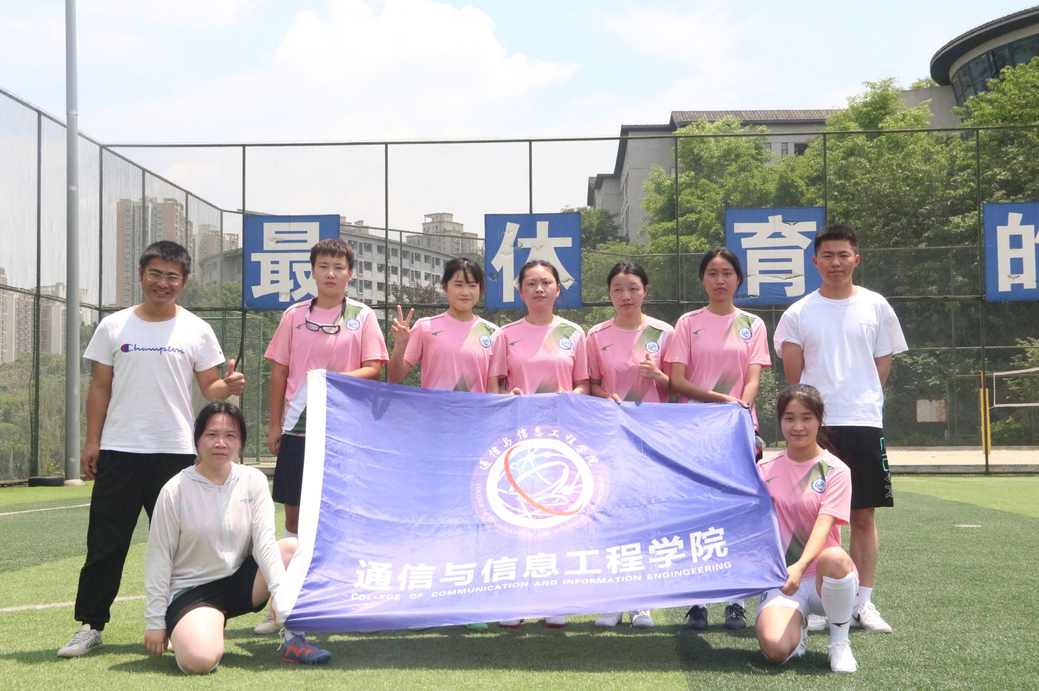 通信与信息工程学院女足姑娘们在五月的阳光下盛开,刷新学院女足最好成绩。我们坚信“坚韧不拔,永不放弃”的铿锵玫瑰会继续绽放,她们也会在绿茵场上继续拿下最傲人的荣耀,闪耀青春光芒!