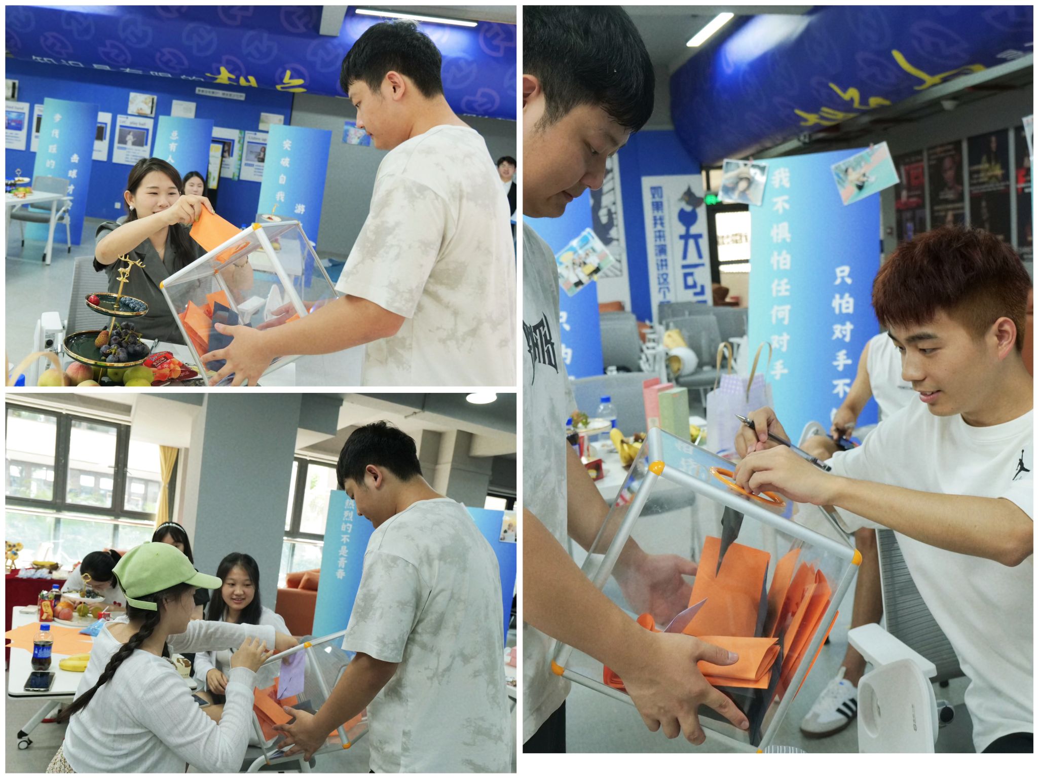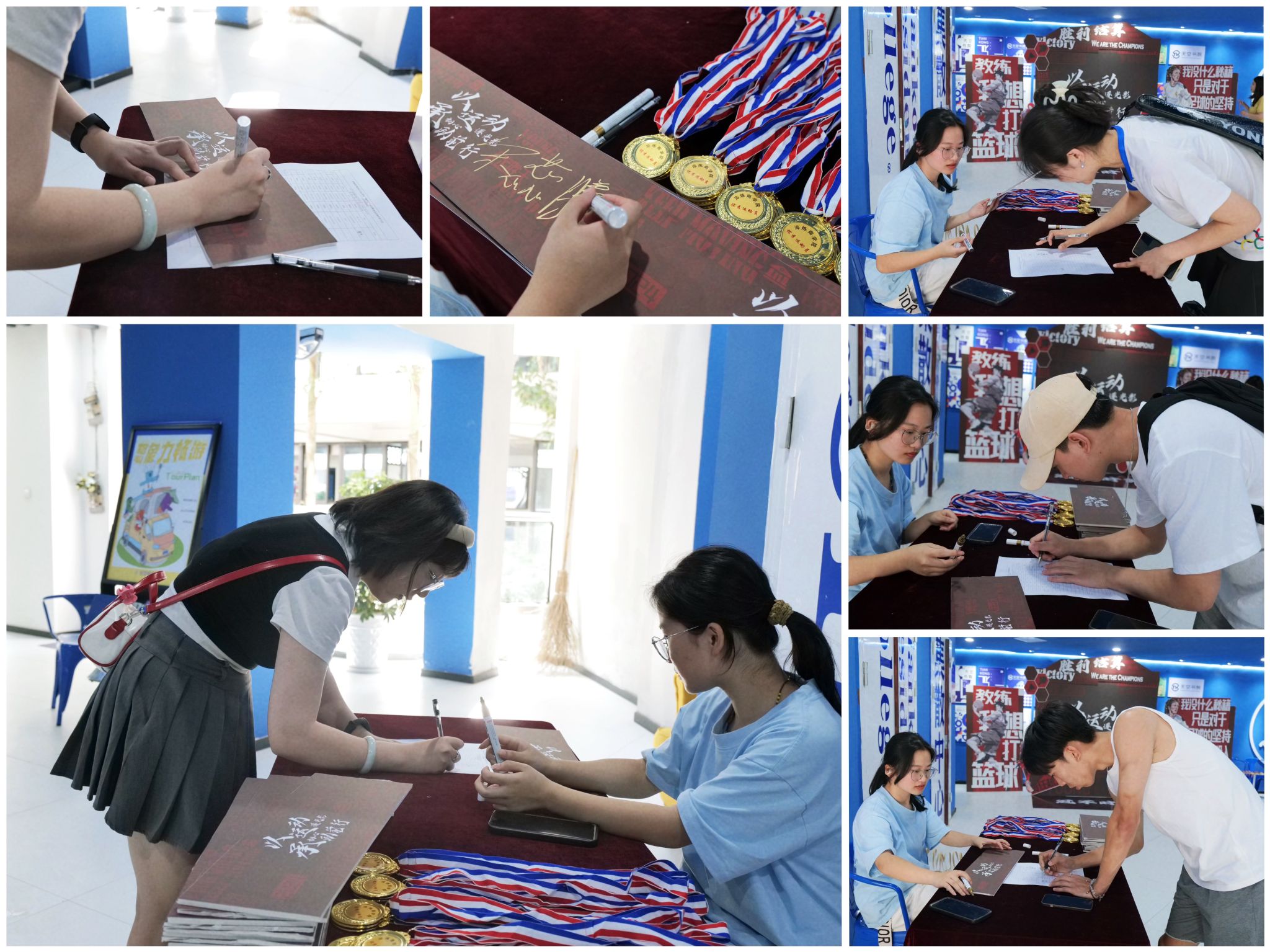 寄信未来展希望,心愿箱中藏梦想。在这个充满希望的时刻,运动员们满怀信心地给未来的自己写了一封信,字里行间洋溢着对更高荣誉的渴望,每一划都承载着对未来的无限憧憬。同时,运动员们还写下了自己的心愿,和信件一起放入心愿箱中。这些期待将被珍藏于心愿箱中,以待来年再度开启,体会心愿成真的喜悦。当然!“淬炼儿独属”环节也让每位运动员都深深感受到了别样的温暖与关怀。运动员们在印有淬炼商学院的运动服上用金色水笔签下了自己的名字,拥有了个人专属运动服。这不仅仅是一件独一无二的运动服,更是对他们为学院竞技体育工作做出贡献的认同和肯定。