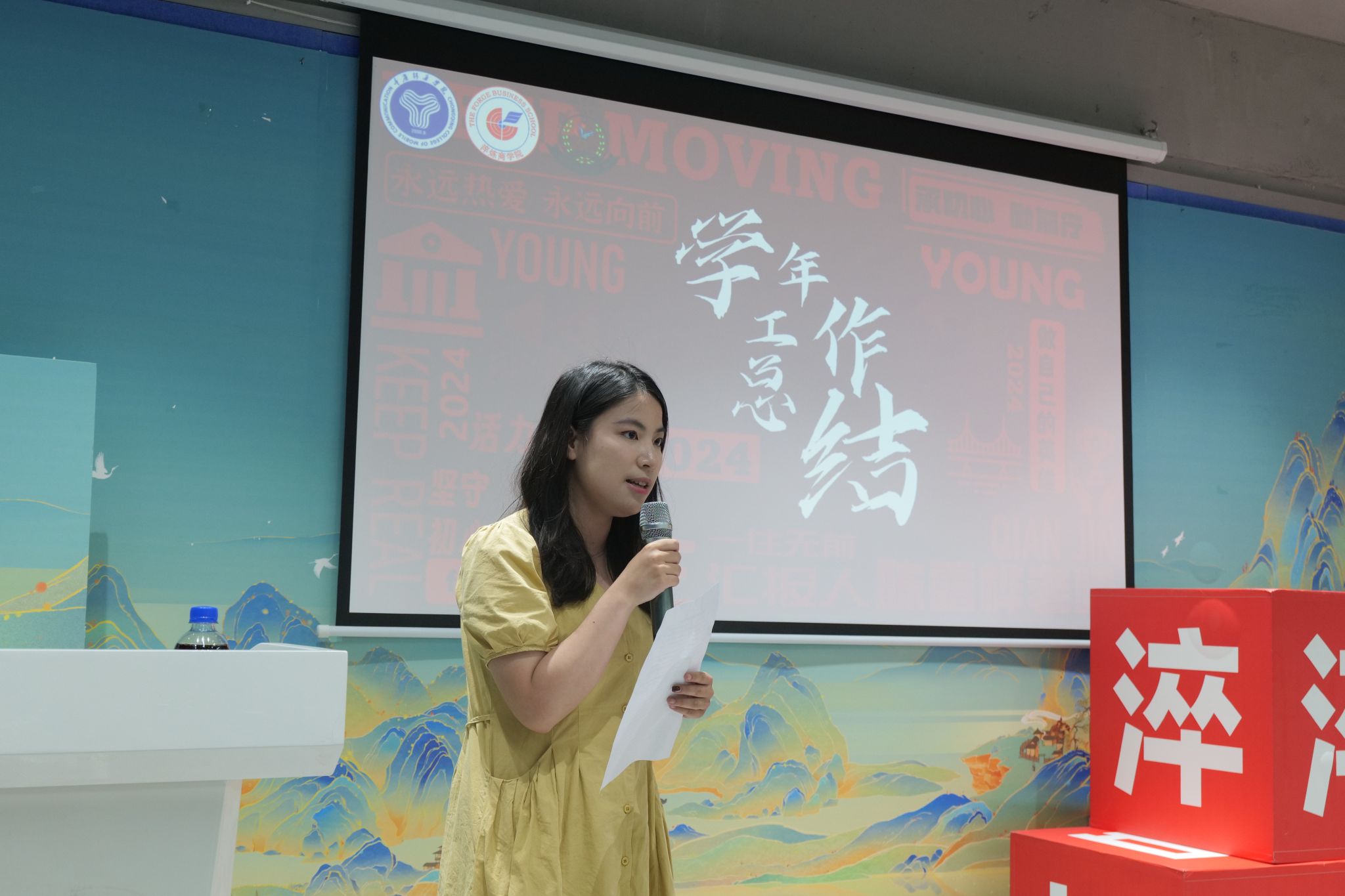 承荣誉总结过往,展未来铸就辉煌。一段精心制作的“学年竞技体育回顾视频”将大家带入精彩纷呈的体育世界。视频中,运动员们奋勇争先,每一次跃动都彰显拼搏精神。胜利的欢笑,团队的齐心,重现着运动场的激情。在场师生深受触动,共鸣的掌声久久回荡。竞技体育板块指导老师陈露桦上台进行学年工作总结。陈露桦老师详细介绍了学院在竞技体育方面所取得的成果和突破,对运动员们的付出和成绩给予了高度评价,对下一学年的发展提出了展望。
