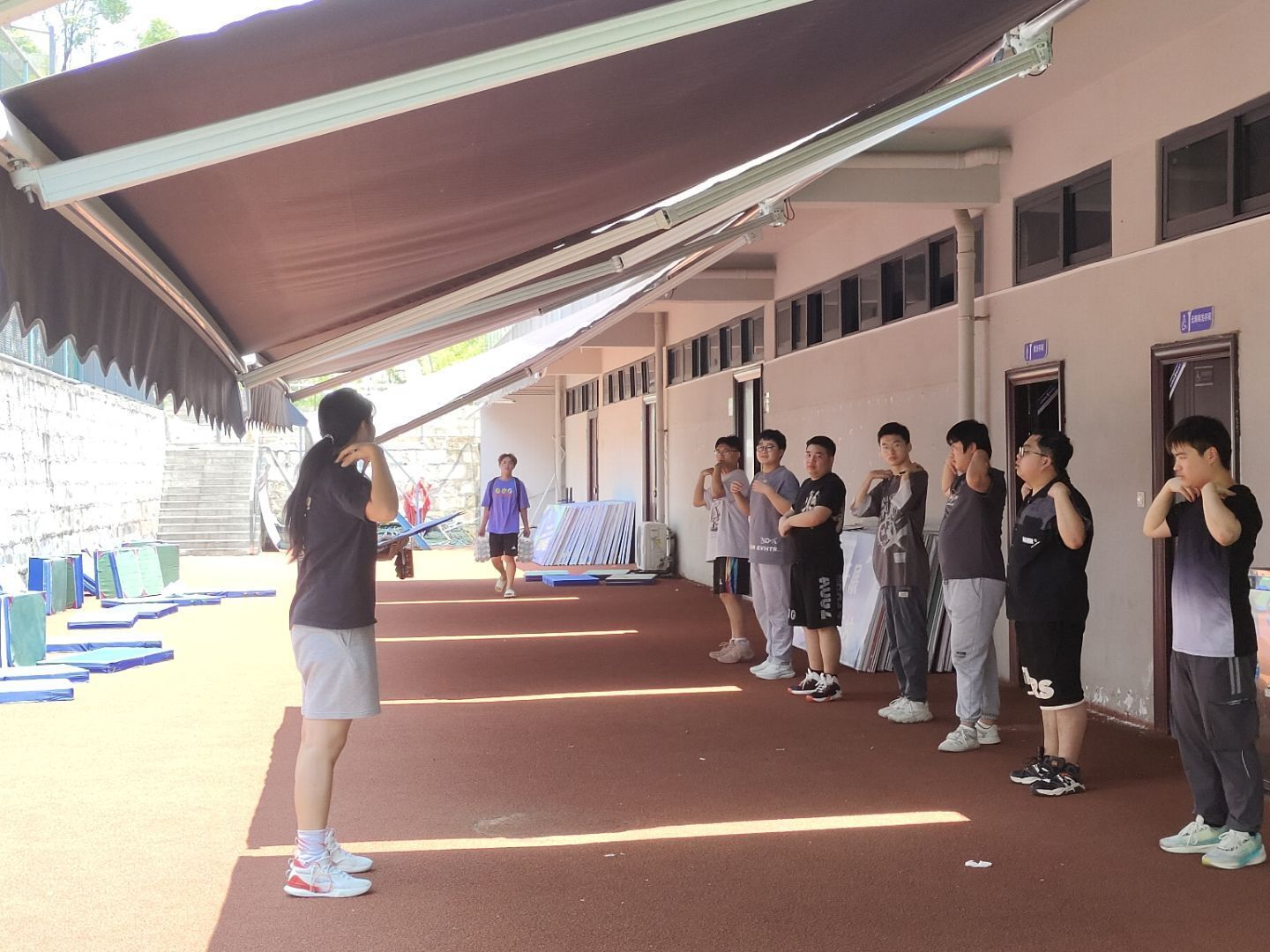 根据学生的着装,提醒学生选择舒适、恰当的服装。确保穿着舒适、透气的衣服和运动鞋,以便在测试过程中保持舒适度和灵活性。充分做好赛前热身,以保证每位同学在训练过程中避免拉伤以及受伤的情况。