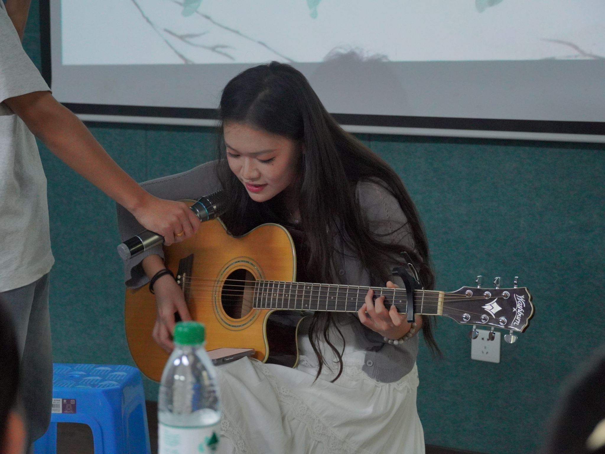 初赛阶段,选手们就展示出了极高的热情与实力。他们以饱满的精神状态进入爱莲书院影音室,用优美的歌声抒发着自己对音乐的热爱。一首首动人的歌曲在大家耳中回荡,或激昂澎湃,或温柔婉约,让评委和观众们沉浸其中。经过参赛者激烈的角逐、评委们严谨周到的评选,十二名选手脱颖而出,成功晋级决赛。