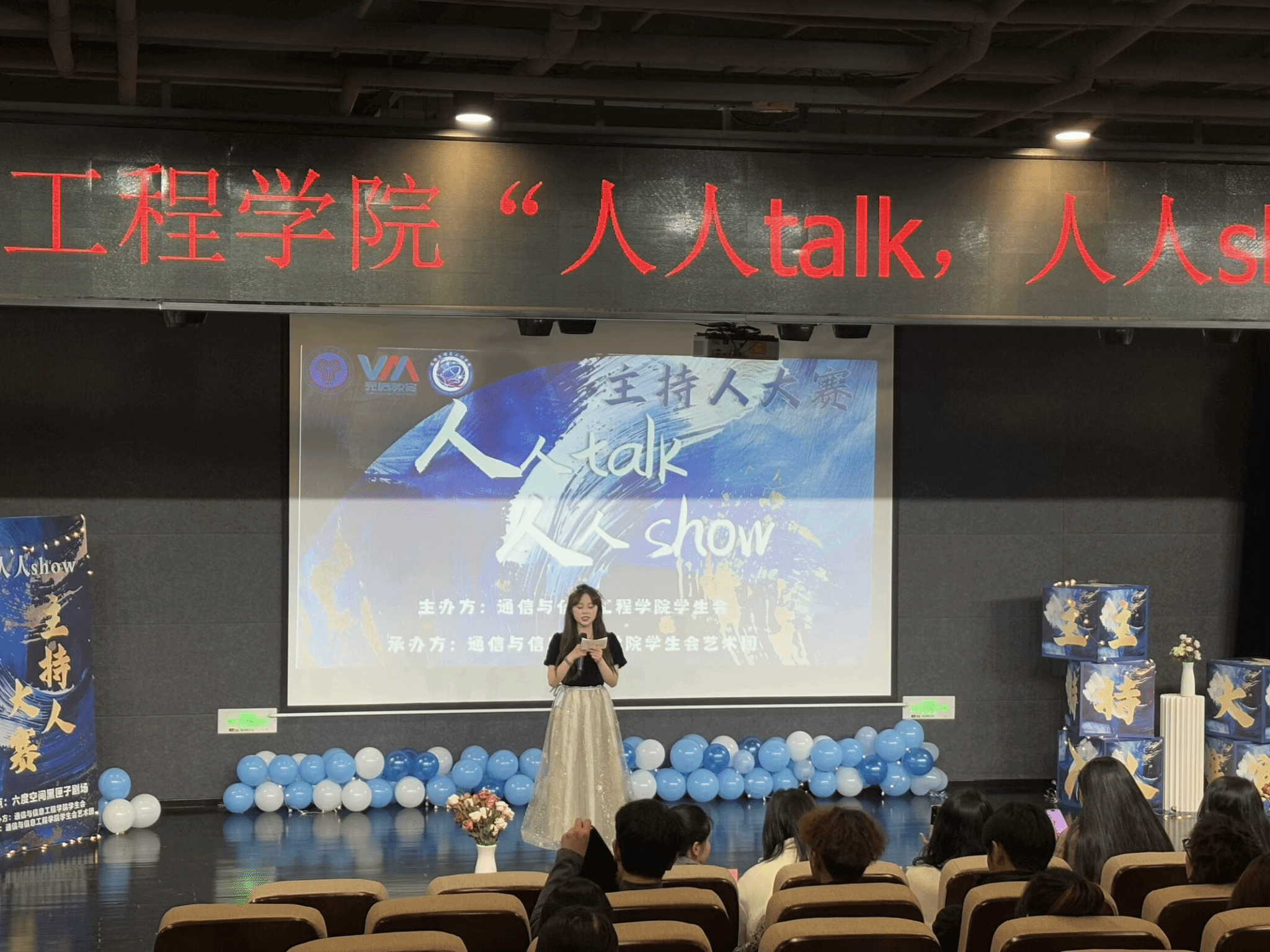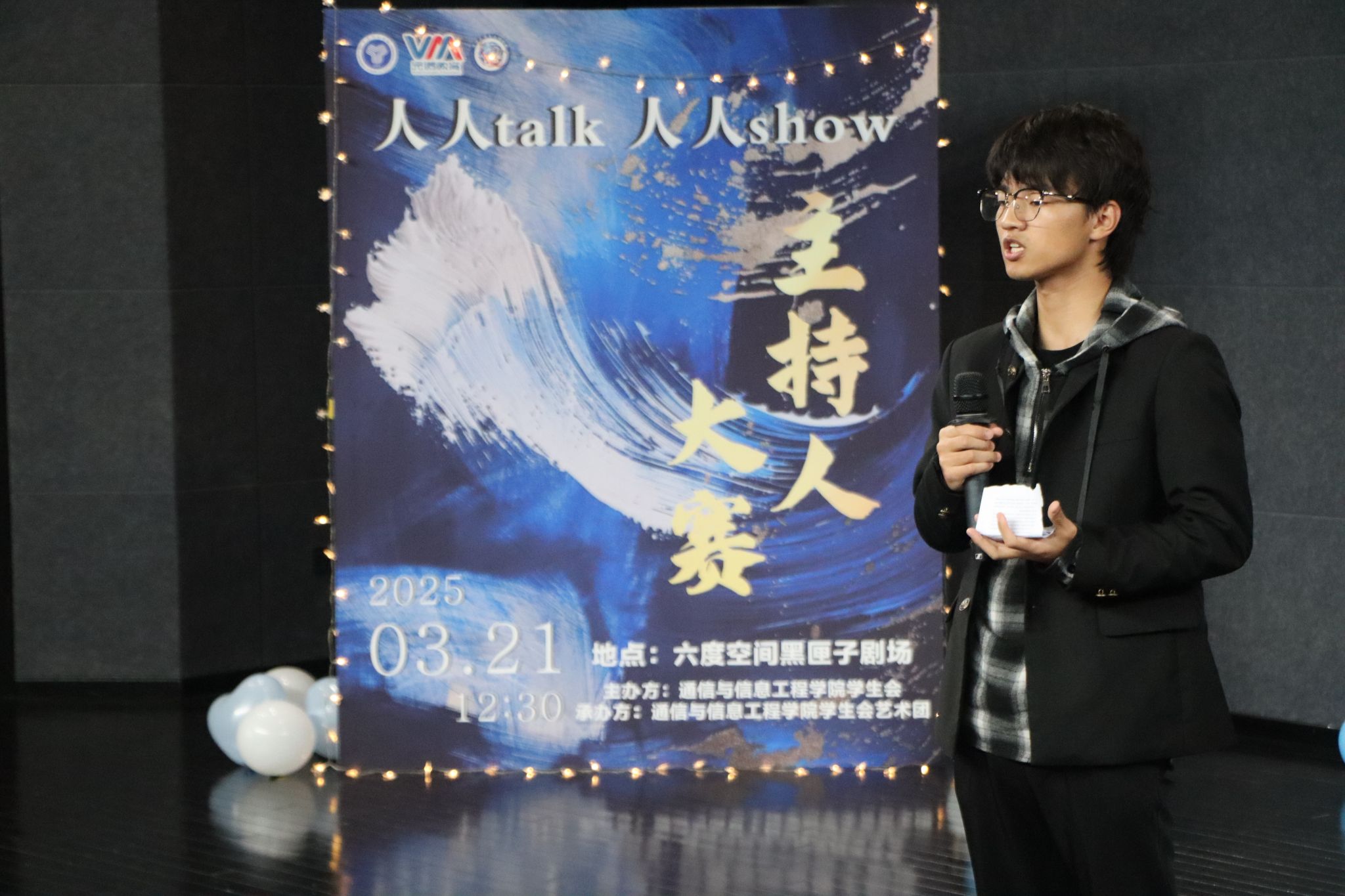 2025年3月21日,通信与信息工程学院在六度空间黑匣子剧场举办了“人人talk,人人show”主持人大赛,为大学生们带来了一场独特的视听盛宴。此次大赛面向学院全体同学,吸引了众多热爱主持的同学踊跃参与。