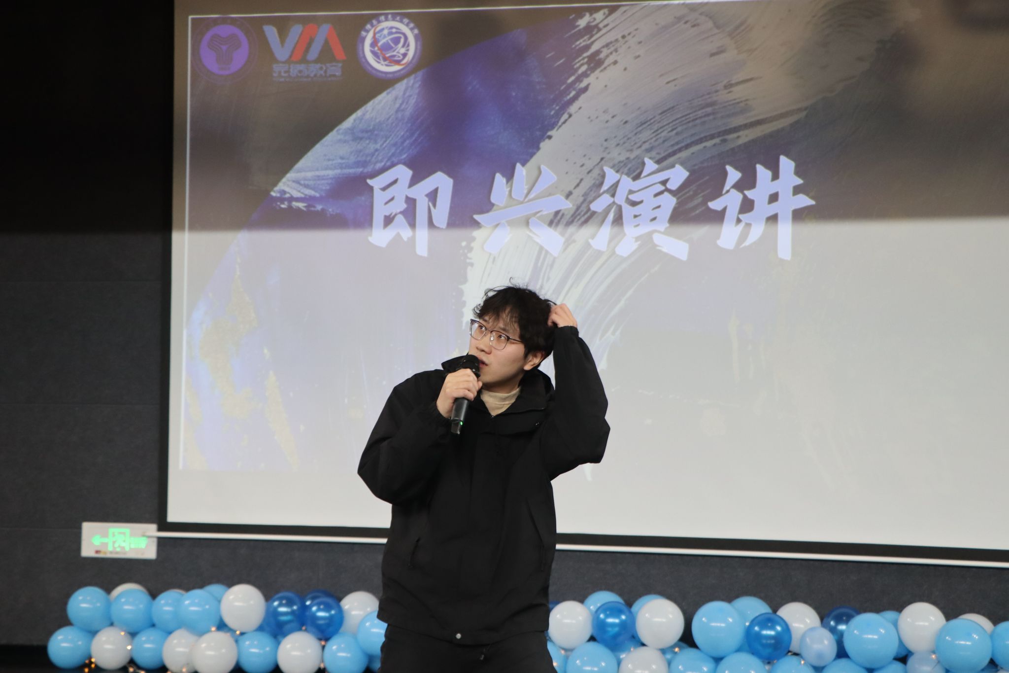 经过第一轮的激烈角逐,根据评委打分,前六名选手脱颖而出,进入第二轮即兴演讲环节。本轮演讲主题涵盖校园生活、成长经历、人际交往等多个贴近大学生生活的话题。选手们在抽取主题后,迅速组织语言,展现出了良好的语言组织能力和逻辑思维能力。黄欣恬同学游刃有余地向大家阐述了自己对职业规划的思考,从发现自己的个人优势到依据自己的兴趣爱好做决策等多个角度进行了演讲,演讲风格灵动,循序渐进,思路清晰,也引发了同学们对于职业规划的思考。蒋俊豪同学以脱口秀的形式演绎了当代大学生所面临的学业压力,他极具爆发力的表演形式,大胆“冒犯”了部分同学们在面对学业压力时的表现,真情实感的流露,犀利而又深刻。在4分钟的演讲时间里,选手们各展所长,观点深刻且富有感染力,赢得了现场阵阵掌声。