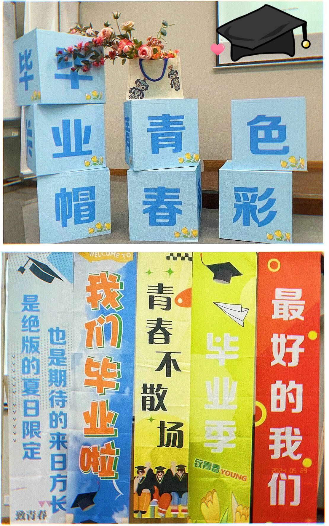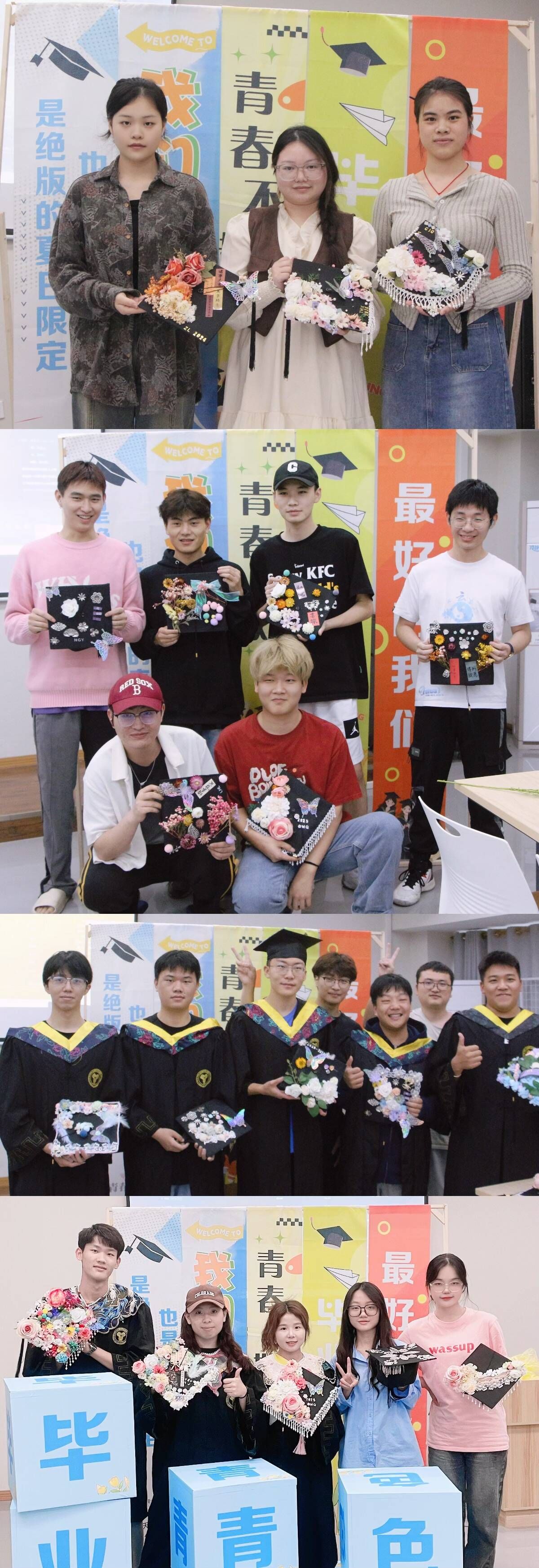 学士帽作为毕业的象征,寓意着毕业生们即将启程迈向全新的人生旅途,迎接更为辽阔的天地。此次活动是为毕业生们精心准备的一份礼物,旨在为他们留下一段美好的回忆,同时也祝愿各位毕业生都如同“繁花”学士帽一样——繁花相送,前程似锦。