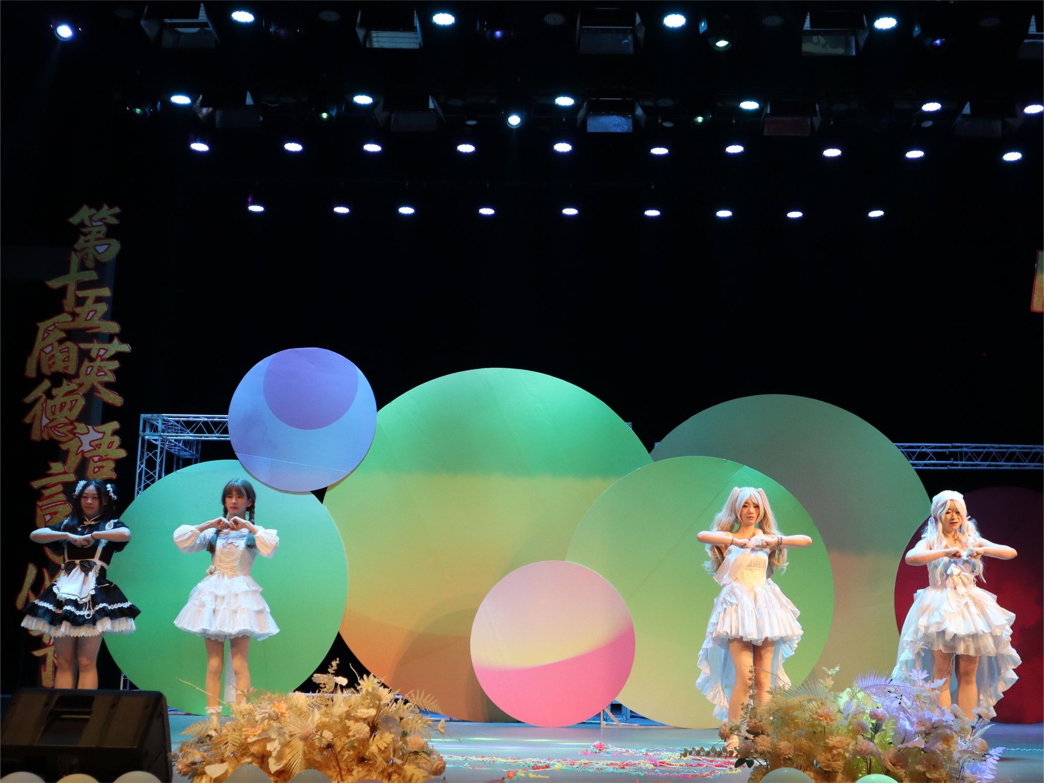 外文歌手大赛的夜晚是一个载歌载舞的夜晚。当观众们还沉浸在前几轮精彩绝伦的歌唱表演中无法自拔时,舞台灯光已悄然改变——一群身着精致动漫服饰的舞者缓缓步入舞台。这是动漫社给观众们带来的舞蹈表演,她们曼妙的舞步犹如绚丽的动画,吸引了全场观众的目光。