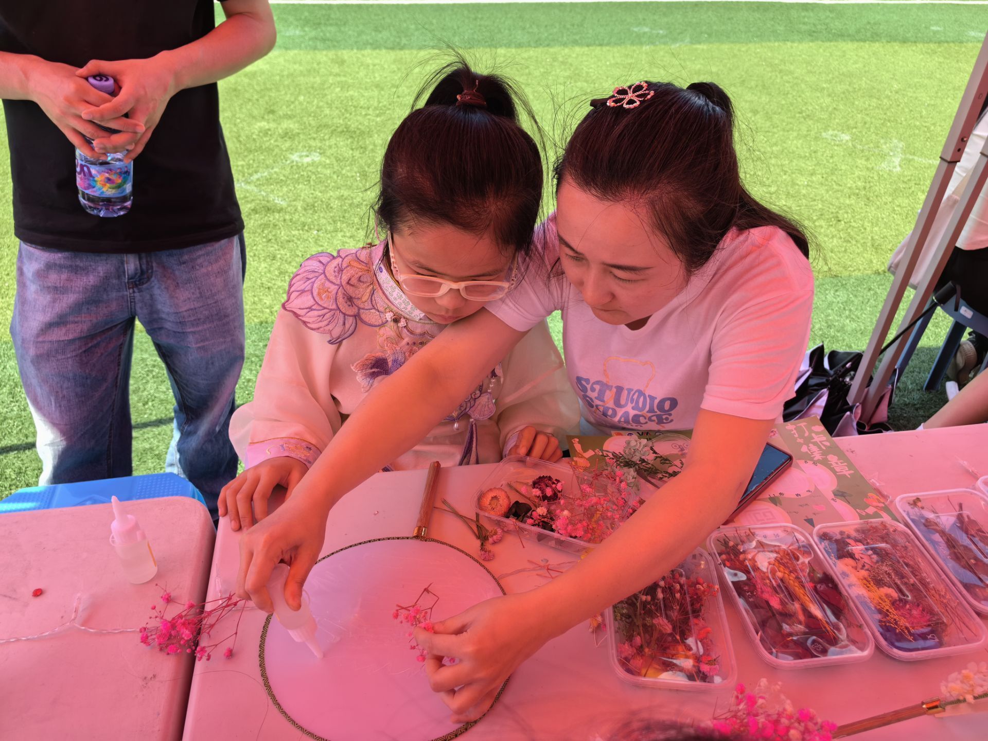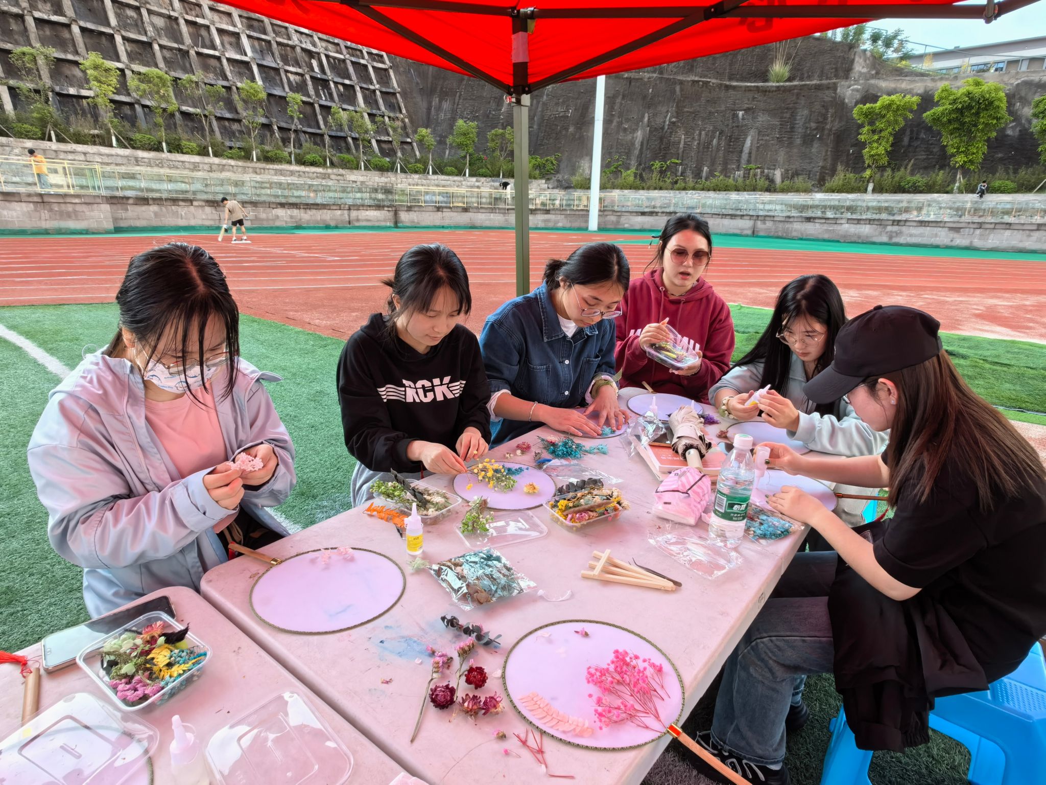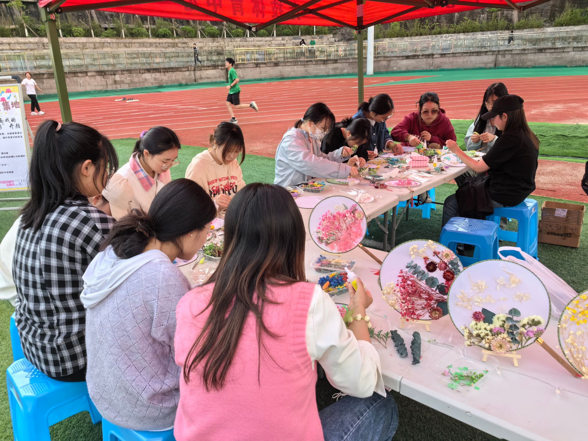 2024年4月25日、4月27日,随着戏剧节的盛大开幕,“名角杯”校园戏剧节外围活动之团扇粘花活动于重庆移通学院綦江校区足球场圆满开展,本次活动以其独特的魅力和深厚的文化内涵,吸引了众多市民和花艺爱好者的热情参与,现场人气火爆,参与人数高达100人次,共同体验传统与创意的完美融合。