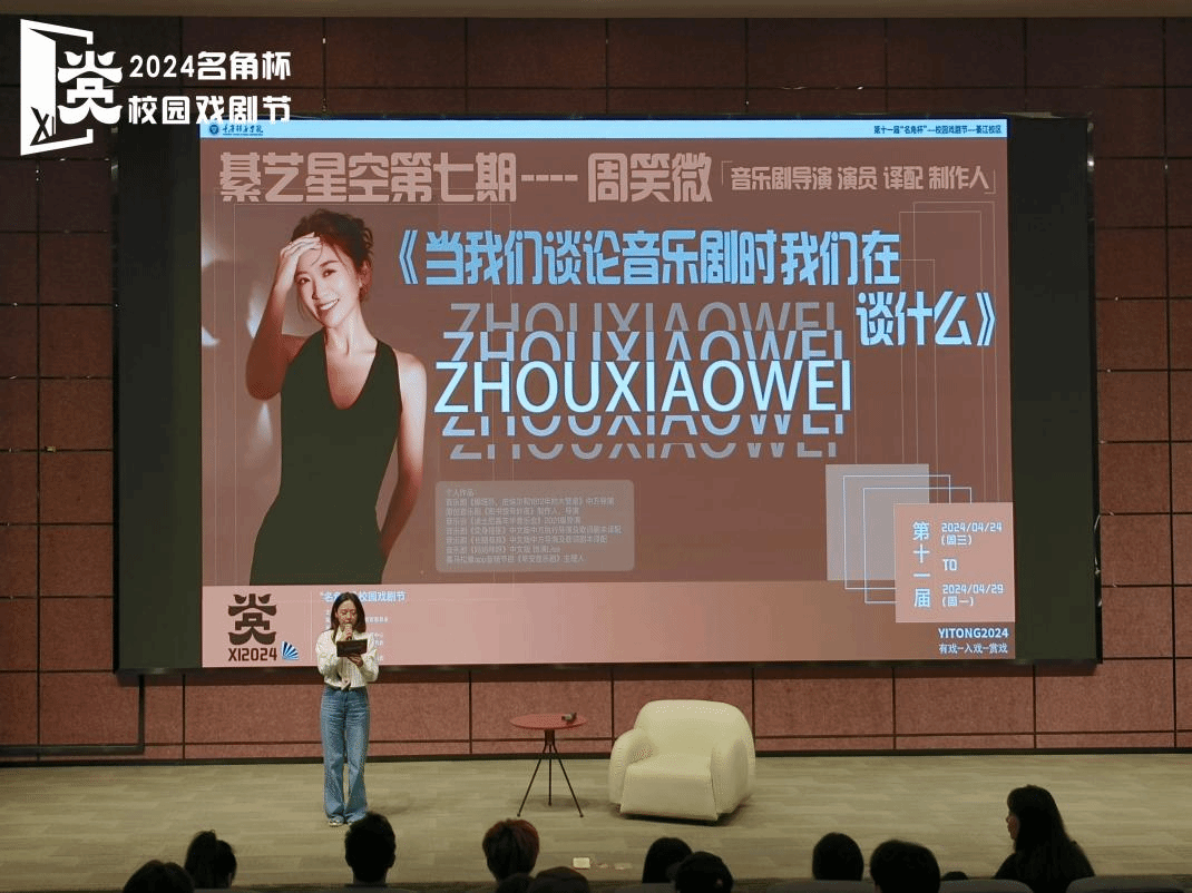 作为学生与艺术大咖的重要桥梁,第七期綦艺“星”空邀请到音乐剧导演,演员,译配,制作人的周笑微老师,于4月24日12:30在贤者楼423开展以《当我们在谈论音乐剧时,我们在谈论什么》为主题,为同学们分享自己从接触音乐剧与成为音乐剧导演,又挑战译配、演员等职业的经历。用语言和视频记录向同学们传递着对于音乐剧的热爱与执着,也对音乐剧产业学院的同学们的表演给予指导与鼓励,给予作为初行者的他们艺术梦想路上的指南。