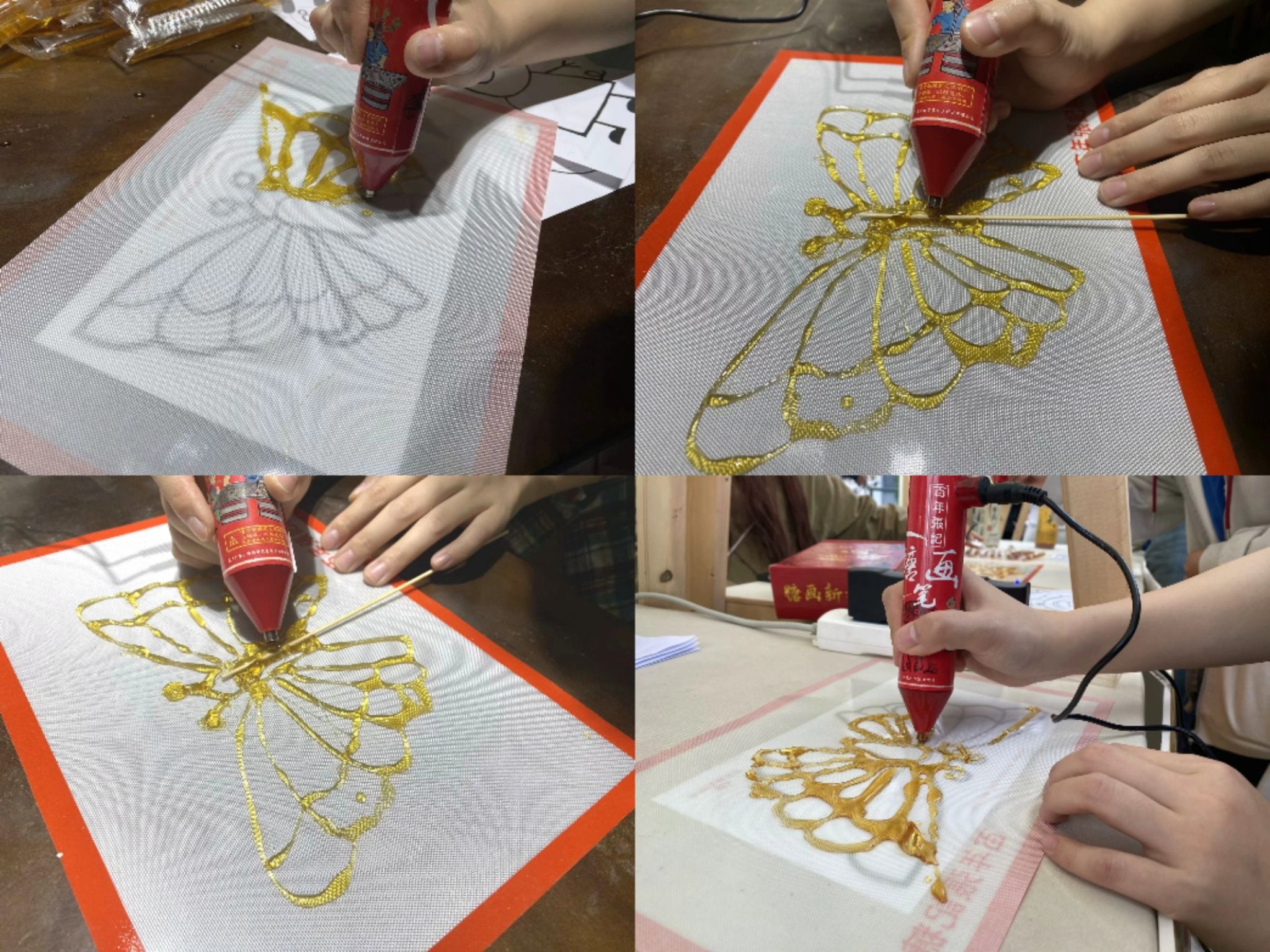 在活动现场,学生们熟练地使用糖画打印笔,让糖汁流淌成各种美丽的图案。蝴蝶、花朵、动物等形象栩栩如生。此外活动还设置了互动环节,让大家亲自体验糖画制作的乐趣。学生们纷纷表示这样的活动不仅让他们感受到了传统文化的魅力,还增进了彼此之间的交流与沟通。本次活动的亮点之一在于有利于提高学生们的专注力和创新力,促进他们的全面发展。