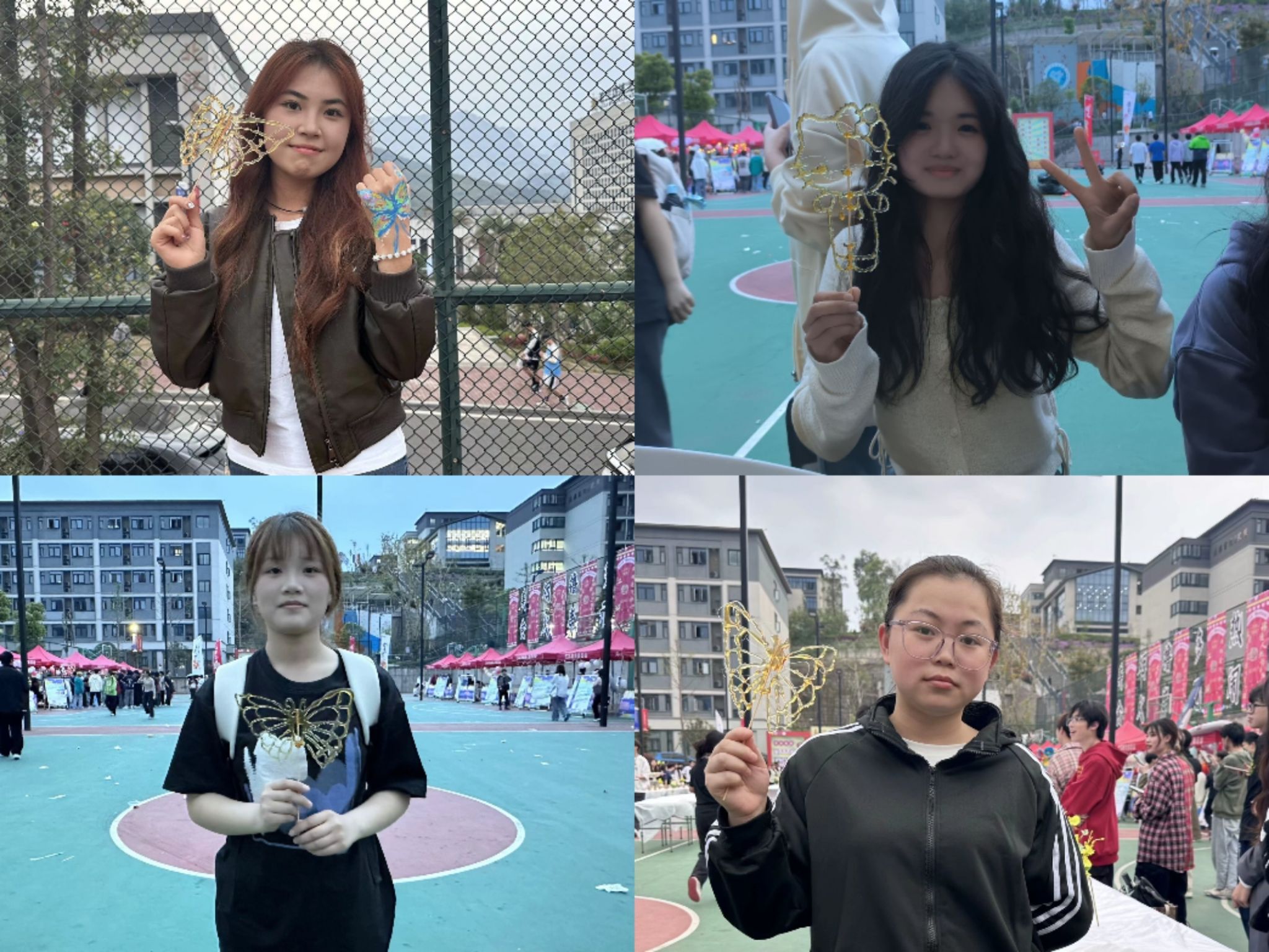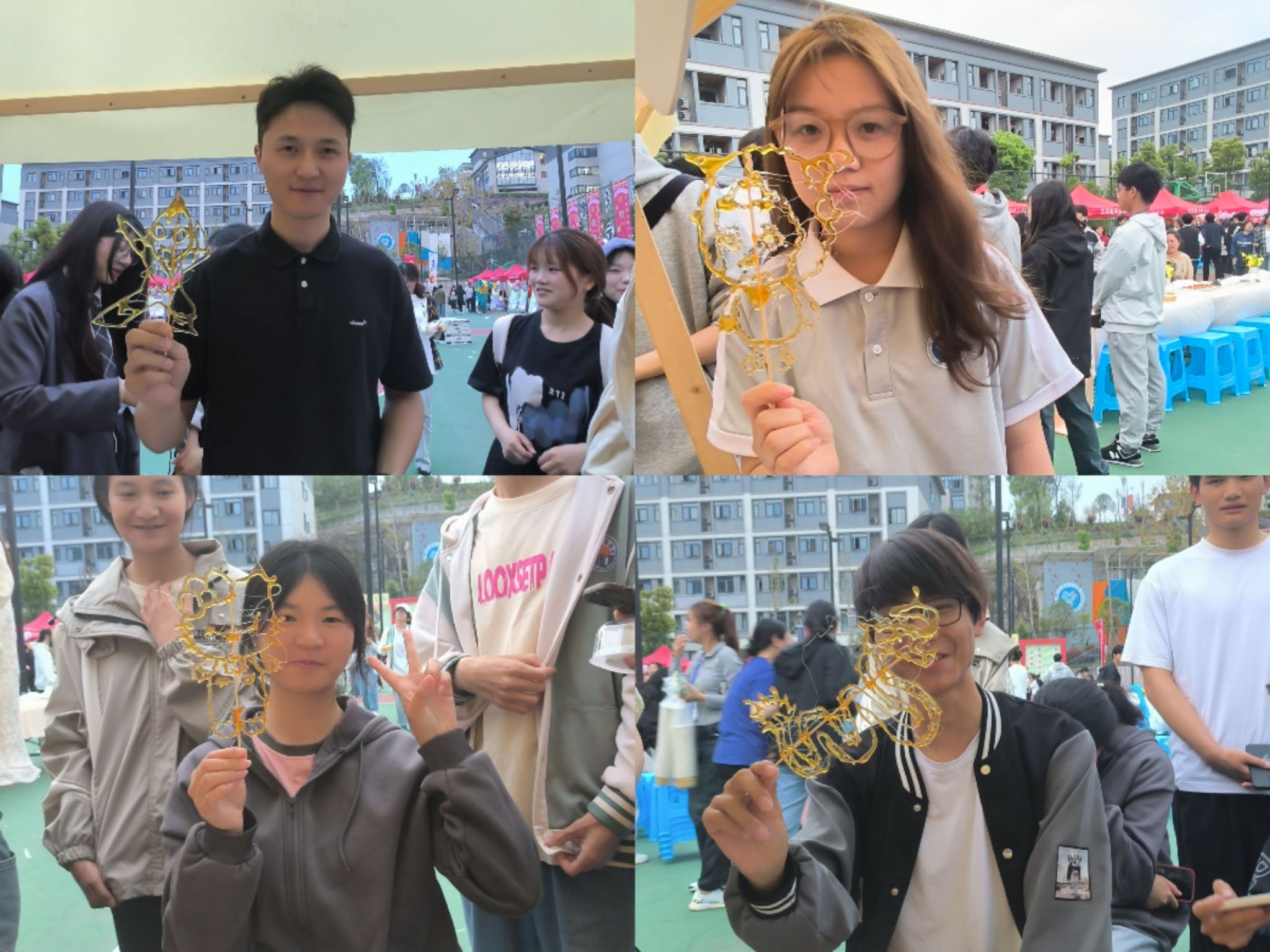 随着最后一道糖汁的流淌,一只栩栩如生的蝴蝶在金黄色的麦芽糖中绽放光芒,这场别开生面的外围糖画活动拉下帷幕,学生们意犹未尽。2023级软件工程彭赠霖表示:“通过这次活动,让我感受到了中华传统文化——糖画的魅力,也让我了解和喜爱上了这一传统艺术形式,为我校完满教育建设注入了新的活力。”参与者们纷纷拿起自己的糖画作品与工作人员合影留念,共同留下这段珍贵的回忆,他们的笑容灿烂而温暖,仿佛是对这次活动最美好的诠释,这张合照不仅定格了这一刻的欢乐与和谐,更象征着传统文化与现代生活的完美融合。