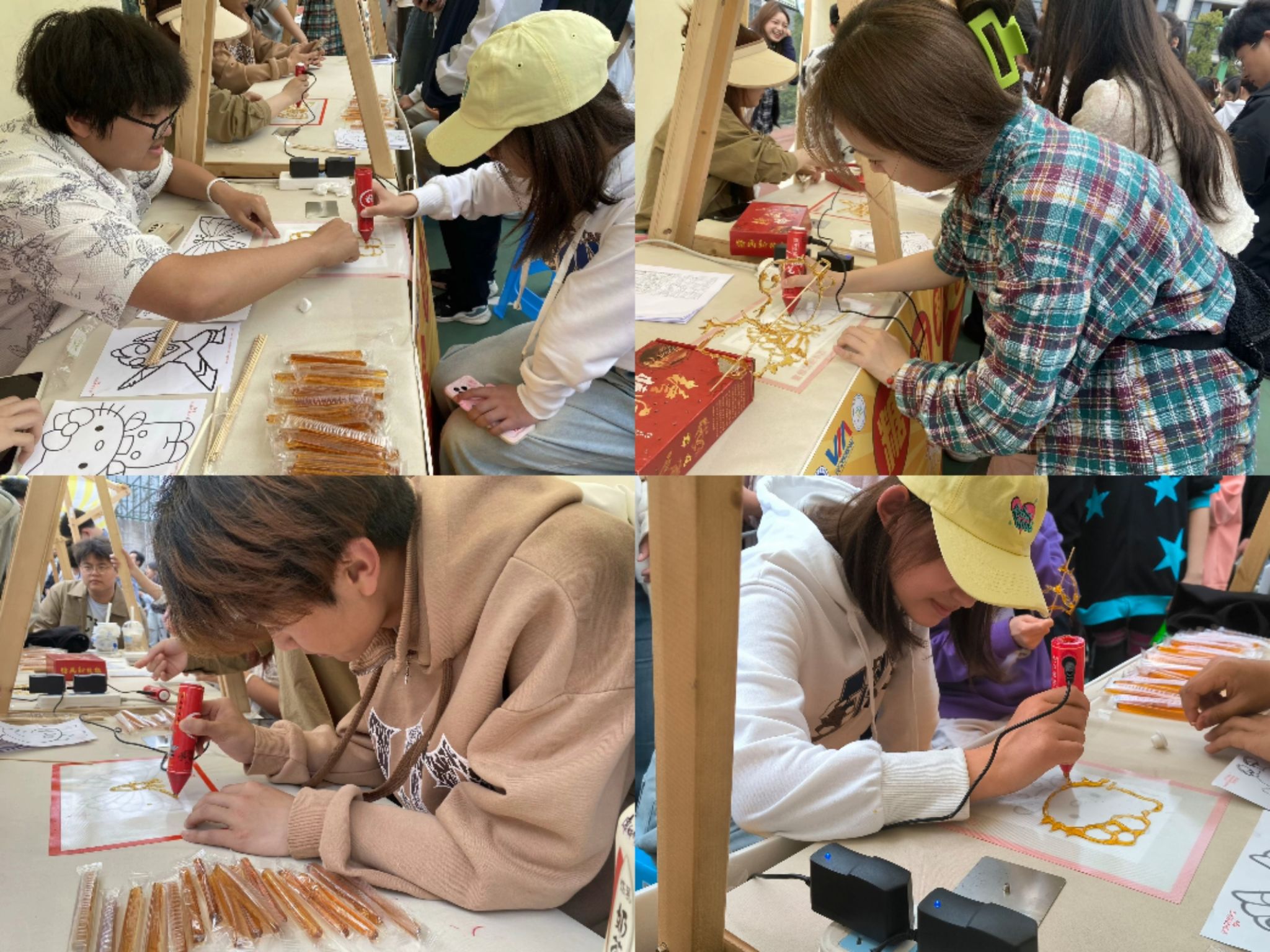 在此次活动中文艺部成员筹备物资、积极准备前期工作,让本次外围糖画活动得到了学生和老师的认可。活动期间学生们以饱满的热情投入到糖画制作中,充分体现了当代大学生的创意和活力,学生不仅可以观赏糖画的制作过程,还可以亲自体验制作糖画的乐趣,增加了活动的趣味性和参与感,提高了互动性与体验性。