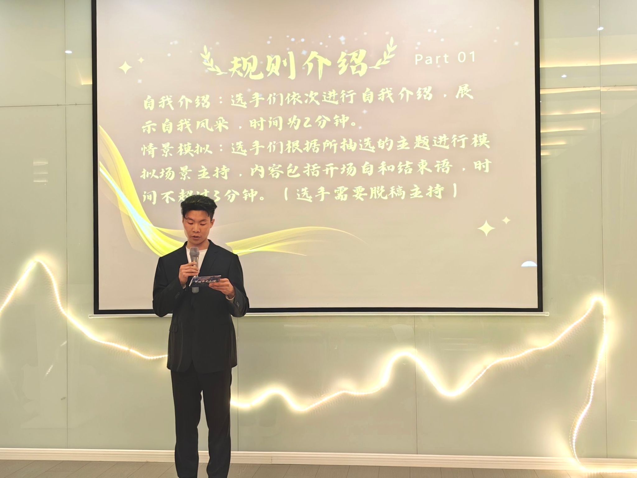 比赛开始之前,在比索活动群进行了即兴主持的题目和顺序抽签,并给参赛选手1个小时的现场准备时间,这考验了同学们即兴主持的能力。在主持人介绍完本次规则后,比赛正式开始。