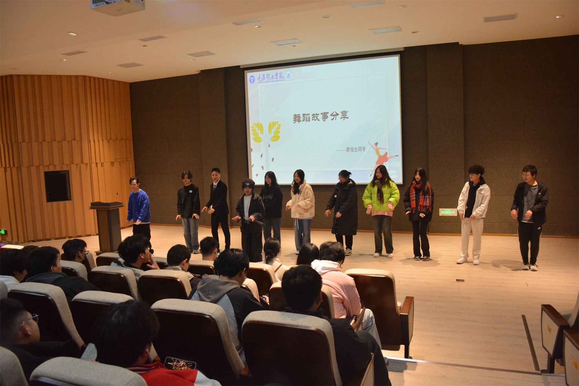 活动现场,黄江同学邀请现场同学上台,一起学习简单的舞蹈动作,同学们在黄江同学的引导下,跟随着音乐的节奏,挥洒着青春的活力,他们的脸上洋溢着快乐的笑容,这一别开生面的互动环节,让同学们感受到了舞蹈的魅力,也拉近了彼此的距离,共同享受舞蹈的快乐。