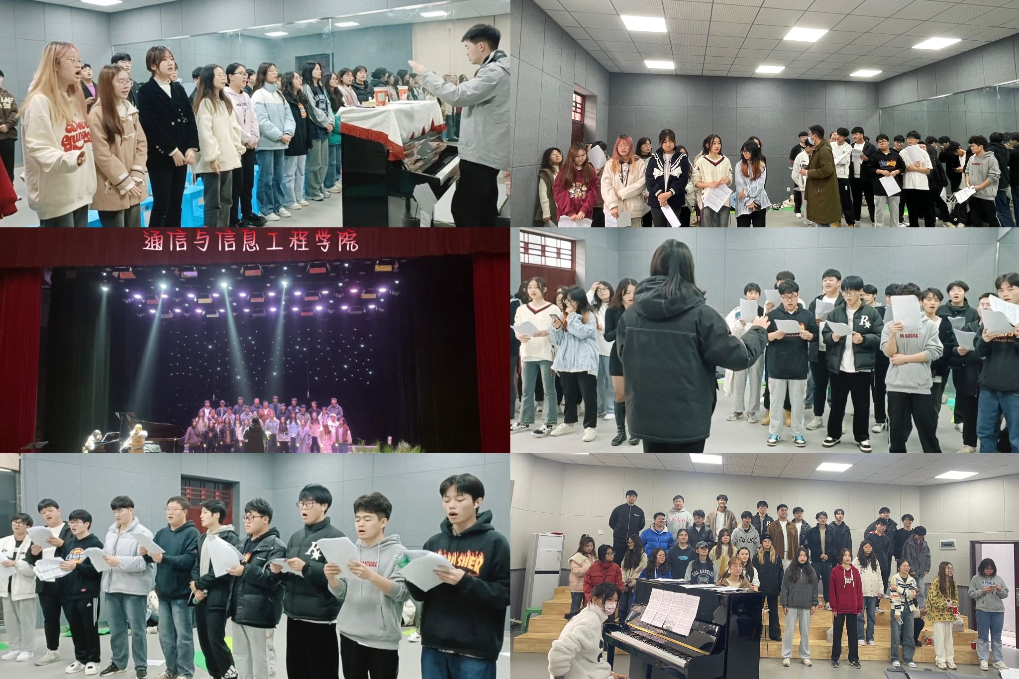 回顾整个备赛过程,我们仍然清晰地记得初次排练的情景。在排练过程中,通信与信息工程学院的陈颖老师悉心指导合唱团的成员们,帮助他们调整气息、感受腹式呼吸,并学习如何把握曲谱节奏、提升歌唱技巧和领略合唱的魅力。