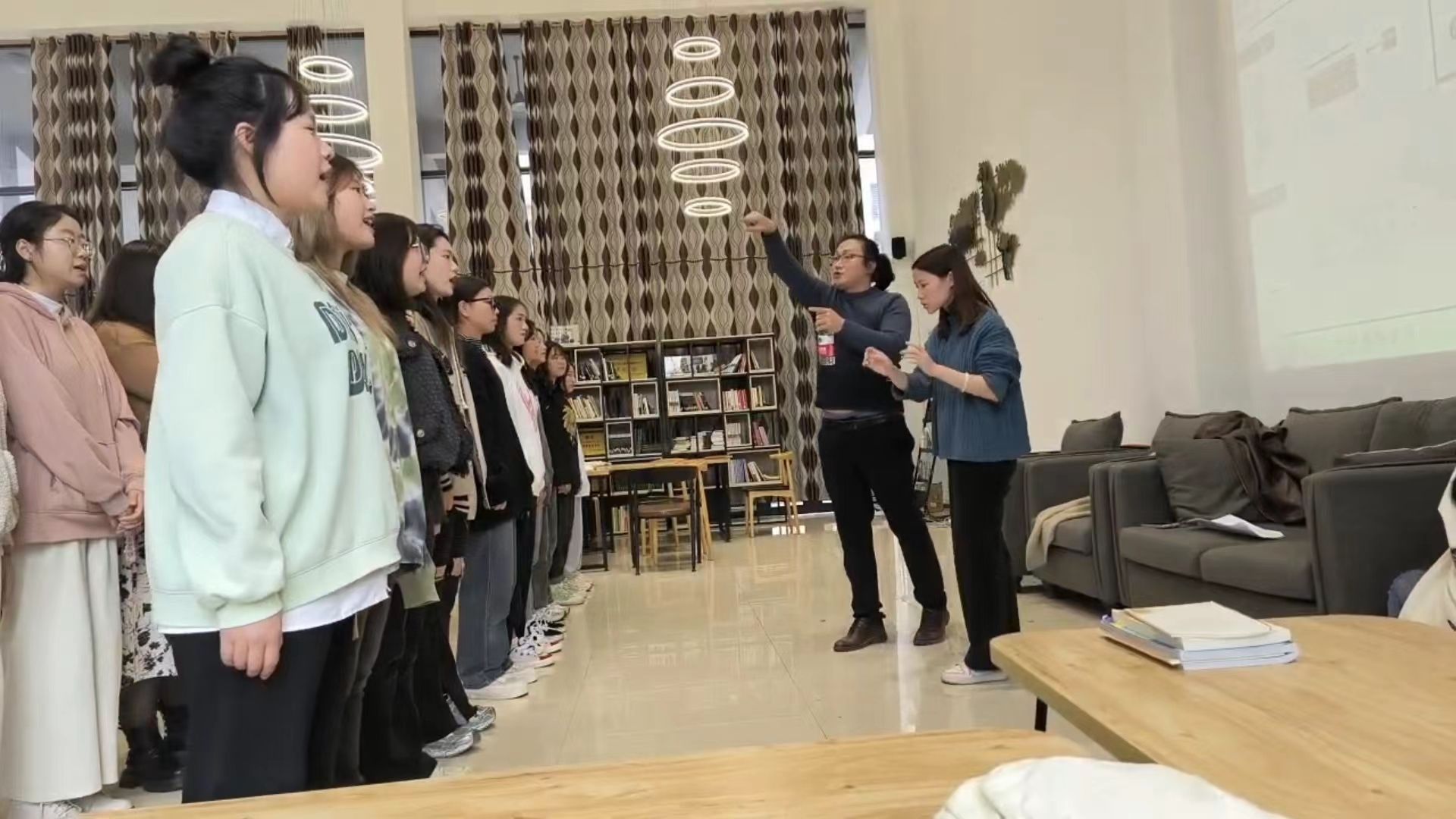 欢快灵动的身影、娇俏明媚的笑容还有悦耳洪亮的歌声相得益彰,外国语学院合唱团的“哼”“哈”,给各个评委老师及观众带来了欢乐,也留下了深刻的印象。